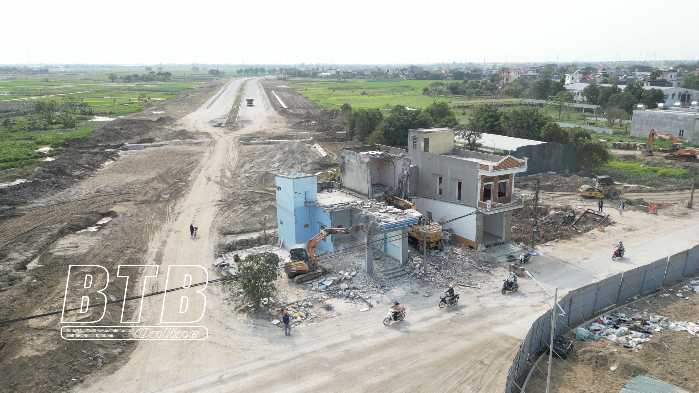 Tại vị trí mặt bằng vừa được huyện Vũ Thư bàn giao, nhà thầu đang tập trung gia tải, xử lý nền đất yếu, phấn đấu hoàn thành và thông xe toàn tuyến trong tháng 8/2025.