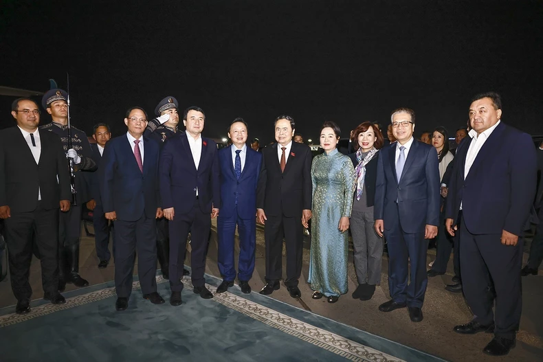 Chủ tịch Quốc hội Trần Thanh Mẫn và Phu nhân, Phó Thủ tướng Chính phủ Cộng hòa Uzbekistan Khodjayev Jamshid Abdukhakimovich và đại biểu. (Ảnh: Doãn Tấn/TTXVN).