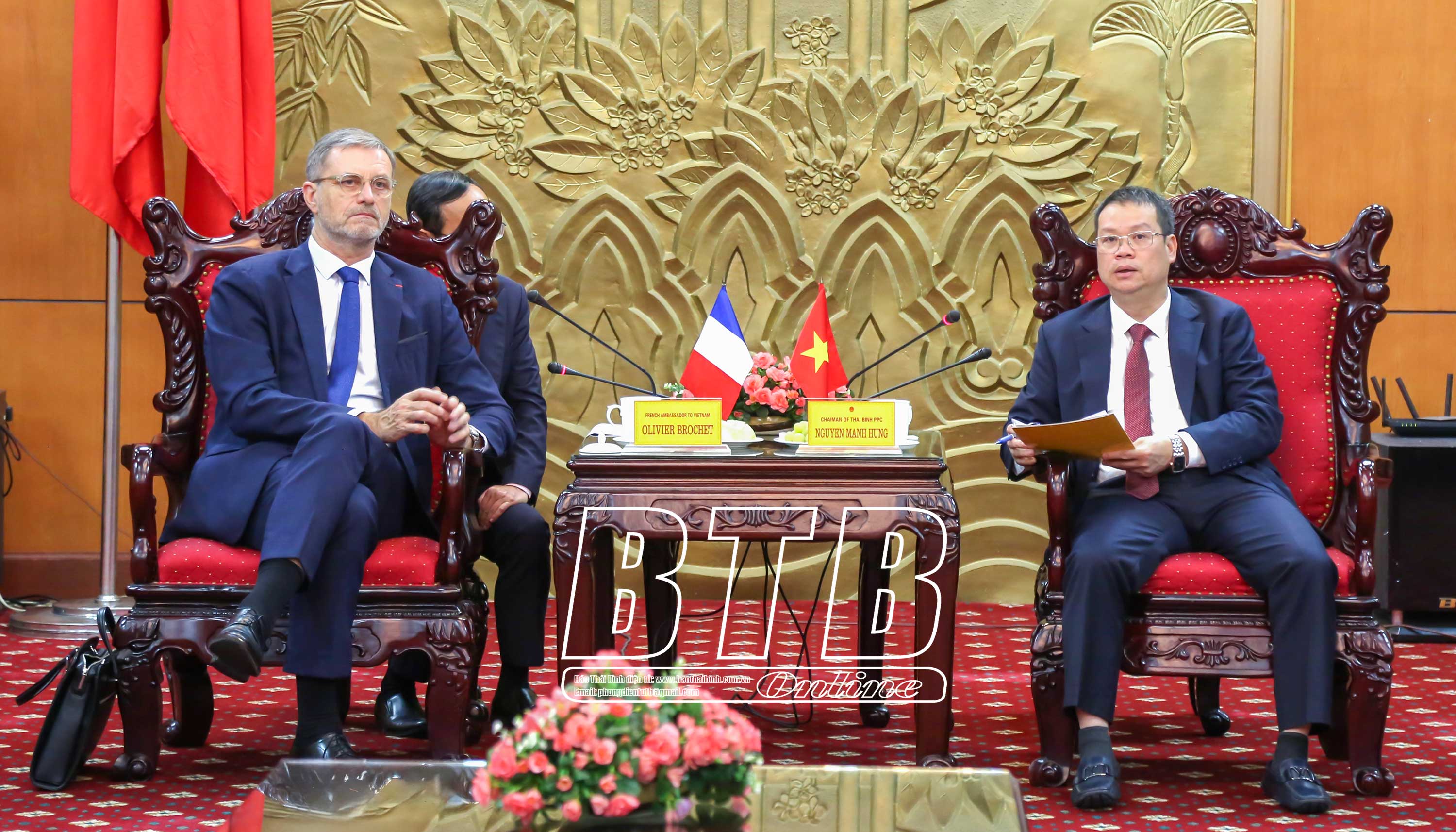 Tại buổi làm việc, ông Olivier Brochet, Đại sứ Pháp tại Việt Nam nhấn mạnh: quan hệ song phương giữa Việt Nam và Pháp hiện nay là đối tác chiến lược toàn diện. Ông bày tỏ vui mừng khi được đến thăm và làm việc tại Thái Bình; đồng thời đánh giá cao các hoạt động giao lưu, xúc tiến đầu tư tại Pháp của lãnh đạo tỉnh trong thời gian qua. Ông tin tưởng rằng với những thế mạnh riêng có và môi trường đầu tư thuận lợi, thời gian tới, các doanh nghiệp Pháp sẽ coi Thái Bình là điểm đến đầu tư mới trong chiến lược phát triển của mình. Ngoài phát triển công nghiệp, ông Olivier Brochet cũng bày tỏ mong muốn được hợp tác với Thái Bình trên các lĩnh vực như giáo dục, văn hóa, phát triển bền vững và bảo tồn thiên nhiên. Đại sứ và các cơ quan, doanh nghiệp liên quan sẽ tiếp tục đồng hành cùng tỉnh trong các hoạt động giao lưu nhân dân, thúc đẩy hợp tác phát triển kinh tế, thương mại giữa tỉnh Thái Bình và nước Pháp.