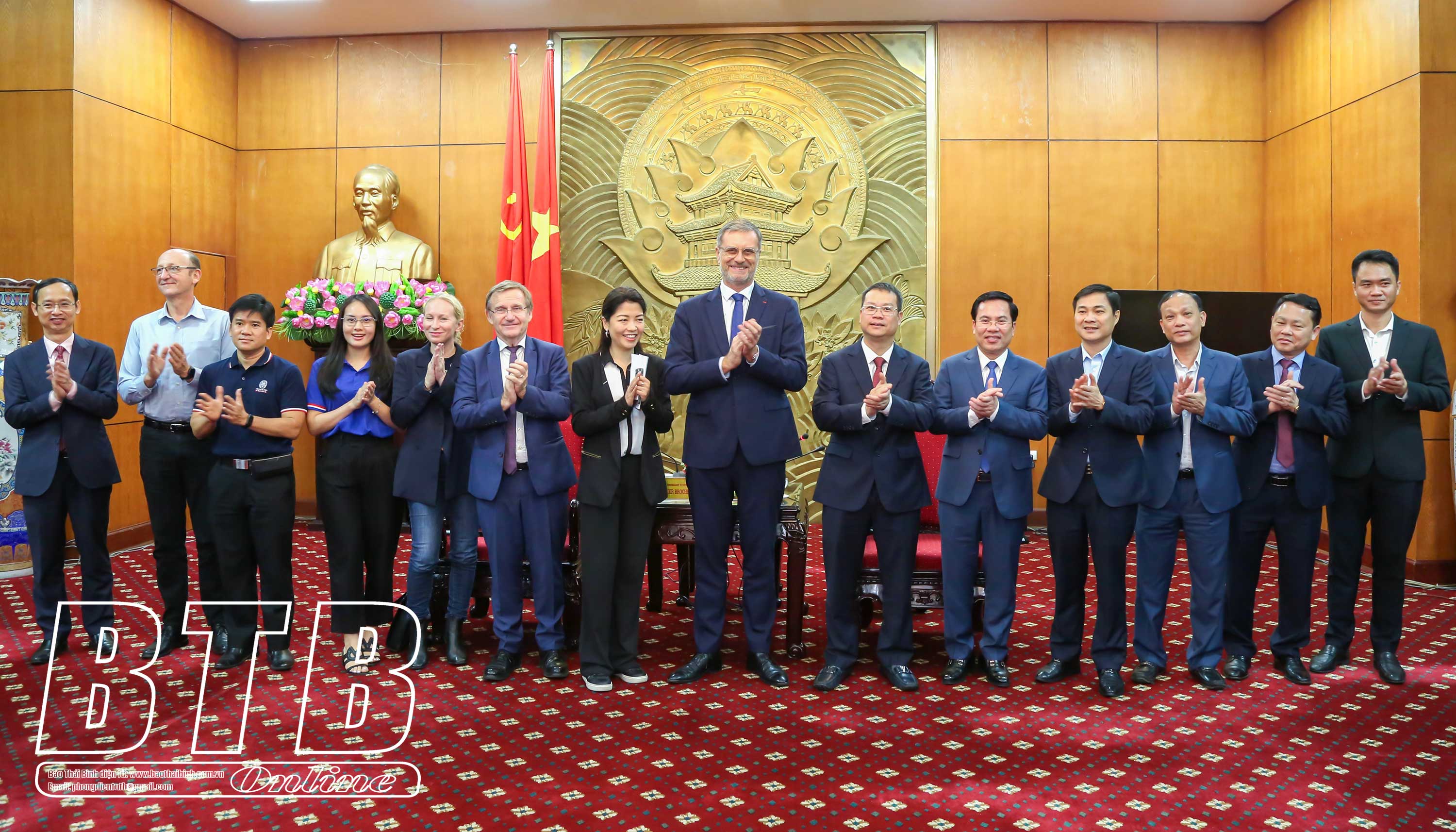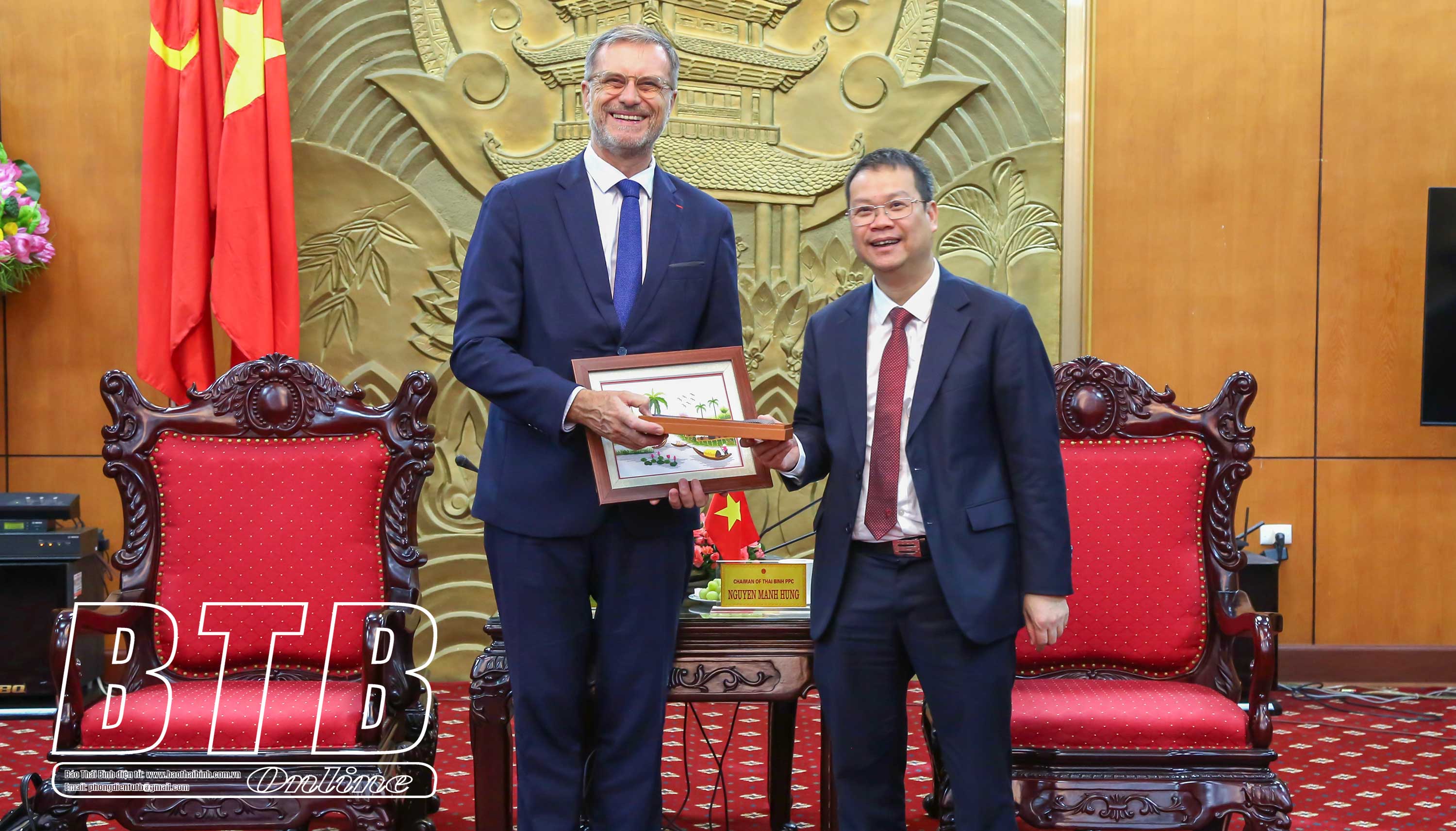 Phát biểu tại buổi làm việc, đồng chí Phó Bí thư Tỉnh ủy, Chủ tịch UBND tỉnh bày tỏ vui mừng được tiếp và làm việc với Đoàn. Đồng chí giới thiệu khái quát về tỉnh, những tiềm năng, lợi thế trong phát triển kinh tế - xã hội. Hiện nay, tỉnh Thái Bình đang phát triển mạnh mẽ, nhất là trong lĩnh vực công nghiệp. Toàn tỉnh có 1 khu kinh tế, 11 khu công nghiệp và 49 cụm công nghiệp với tổng diện tích hơn 32.800ha. Tỉnh đã thu hút trên 200 dự án FDI với tổng vốn đầu tư đăng ký gần 6 tỷ USD, trở thành điểm đến hấp dẫn của nhiều doanh nghiệp, tập đoàn lớn trên thế giới đến nghiên cứu, hợp tác và đầu tư. Tuy nhiên đến nay, các nhà đầu tư đến từ châu Âu, đặc biệt là Pháp, chưa biết nhiều đến Thái Bình, vì vậy tỉnh chưa có dự án nào của nhà đầu tư Pháp. Đồng chí Phó Bí thư Tỉnh ủy, Chủ tịch UBND tỉnh đánh giá cao sự quan tâm của cá nhân ông Olivier Brochet, Đại sứ Pháp tại Việt Nam; đại diện Cơ quan Phát triển Pháp (AFD); Phòng Thương mại và Công nghiệp Pháp tại Việt Nam (CCIFV); Công ty TNHH Airbus Việt Nam đối với tỉnh Thái Bình. Đồng chí mong muốn sau chuyến làm việc này, Đại sứ và các cơ quan, doanh nghiệp liên quan sẽ tiếp tục quan tâm, hỗ trợ quảng bá tiềm năng, thế mạnh và chính sách thu hút đầu tư của tỉnh tới các doanh nghiệp Pháp; thúc đẩy khảo sát, kết nối, tạo cơ hội hợp tác và đầu tư tại Thái Bình. Tỉnh sẵn sàng chào đón và tạo điều kiện thuận lợi nhất để các nhà đầu tư nước ngoài, đặc biệt là các nhà đầu tư Pháp, thực hiện dự án đầu tư, kinh doanh tại địa phương.