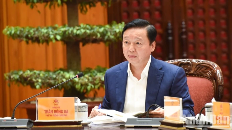 Phó Thủ tướng Trần Hồng Hà phát biểu ý kiến tại cuộc họp. (Ảnh: TRẦN HẢI).