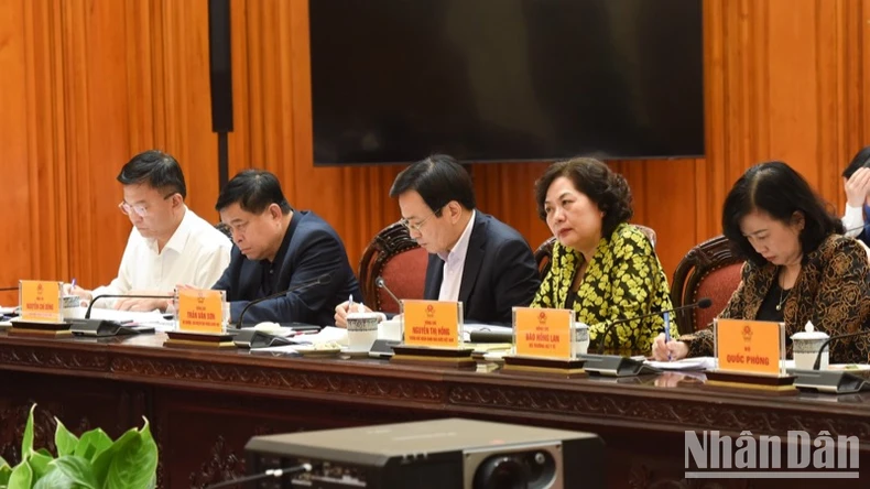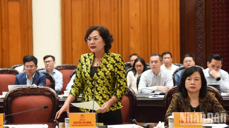 Thống đốc Ngân hàng Nhà nước Việt Nam Nguyễn Thị Hồng phát biểu ý kiến tại cuộc họp. (Ảnh: TRẦN HẢI).