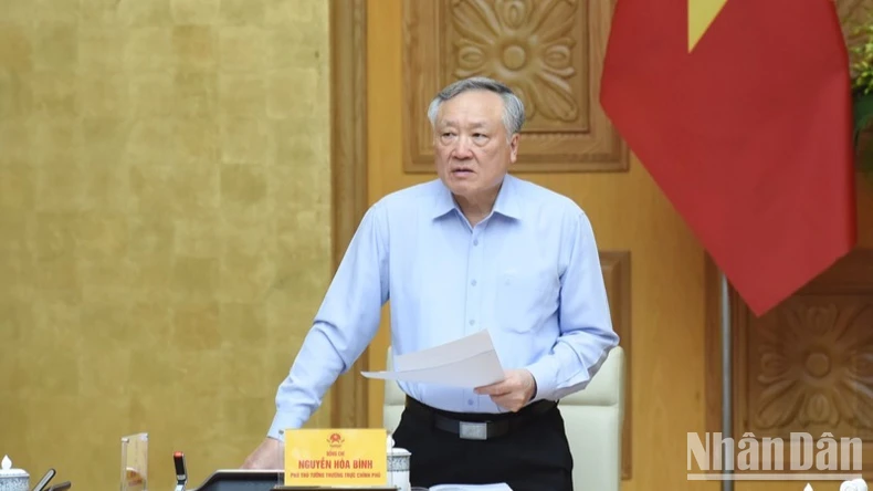 Về Đề án 06, cần rà soát một số điểm theo kiến nghị của Bộ Công an; trong quá trình sắp xếp, phải bảo đảm đúng tiến độ, tuân thủ đúng quy định, những vấn đề còn thiếu quy định thì phải quy định lại. Thủ tướng phân công Phó Bí thư Thường trực Đảng ủy, Phó Thủ tướng Thường trực Chính phủ Nguyễn Hòa Bình trực tiếp các vấn đề này.