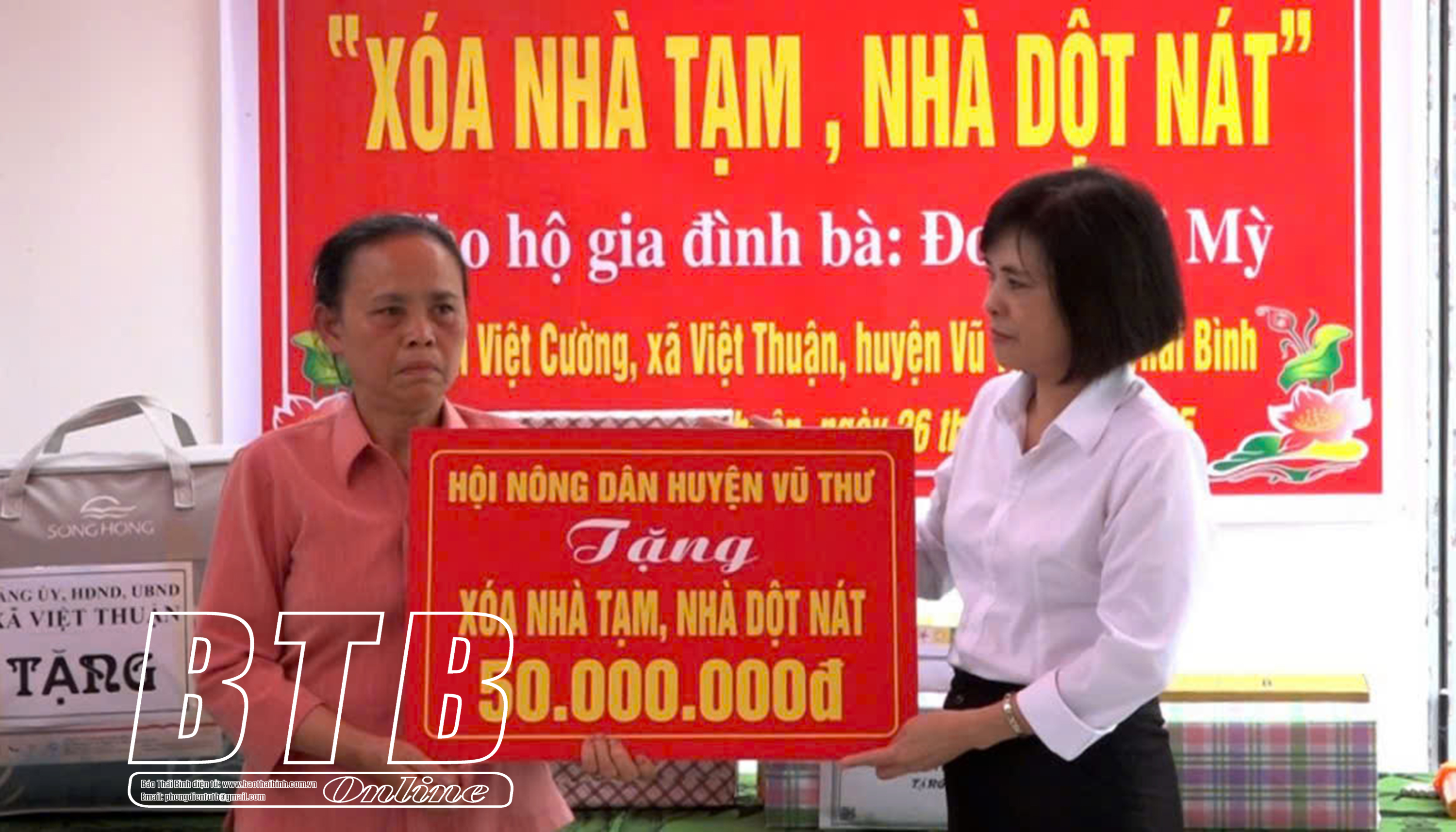Hội Nông dân huyện Vũ Thư hỗ trợ gia đình bà Đoàn Thị Mỳ, thôn Việt Cường, xã Việt Thuận 50 triệu đồng để sửa chữa nhà ở.