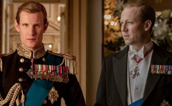 Matt Smith (trái) và Tobias Menzies trong vai Hoàng thân Philip ở các mùa series "The Crown".