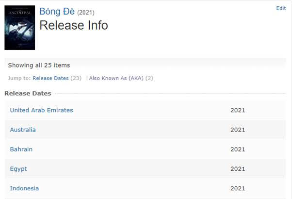 Cụ thể, trên trang cung cấp thông tin dữ liệu phim IMDB cho thấy, đến thời điểm hiện tại, đã có đến 25 quốc gia, vùng lãnh thổ trên thế giới mua bản quyền phát hành, trong đó có Các Tiểu Vương Quốc Ả Rập thống nhất, Australia, Bahrain, Ai Cập (Egypt), Indonesia, Iraq, Iran, Jordan, Kuwait, Lebanon, Libya, Myanmar, New Zealand, Oman, Philippines, Qatar, Saudi Arabia, Sudan, Singapore, Syria, Đài Loan, Yemen...