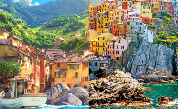 Cinque Terre, có nghĩa là "năm vùng đất", là một khu vực bao gồm 5 ngôi làng trên bờ biển phía tây bắc Italy: Monterosso, Vernazza, Corniglia, Manarola và Riomaggiore. Điểm chung của cả 5 ngôi làng này là đều nằm trên vách đá cheo leo với những căn nhà đủ màu sắc. Italy rất nghiêm ngặt trong việc quản lý màu của các ngôi nhà và tại Cinque Terre, chỉ có 10 màu được phép sử dụng.