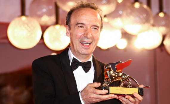 Trên sân khấu, Benigni phát biểu bằng tiếng Italy, cho biết hạnh phúc khi nhận giải. Ông nói: "Sau cuộc gọi của Alberto Barbera (giám đốc nghệ thuật LHP Venice), tôi nhảy một điệu rhumba khi đang khỏa thân". Benigni cũng ca ngợi tổng thống Italy Sergio Mattarella, người sẽ hết nhiệm kỳ vào năm sau. Ông cũng nhắc lại niềm vui khi đội tuyển bóng đá Italy vô địch Euro và chúc họ may mắn tại kỳ World Cup sắp tới. Cuối cùng, diễn viên cảm ơn vợ Nicoletta Braschi, người đã đồng hành ông suốt bốn thập kỷ trong cả cuộc sống và sự nghiệp.