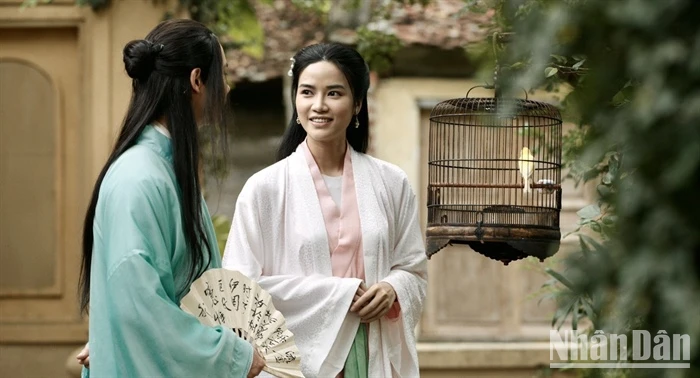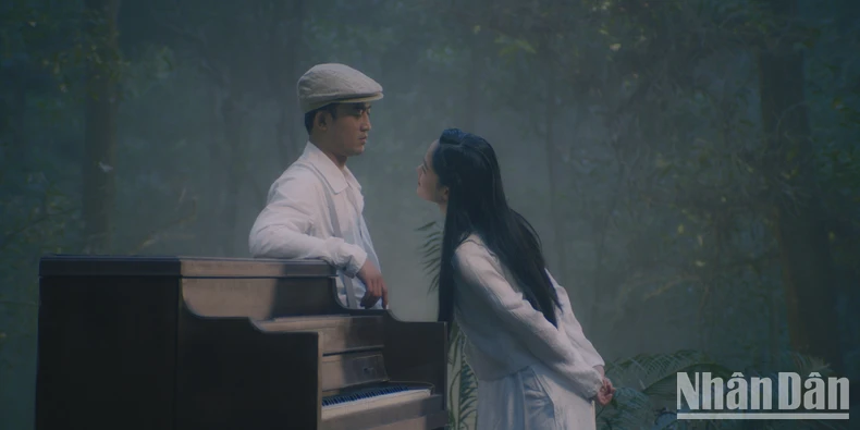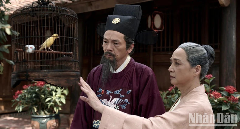 Diễn viên Lê Khanh và Trung Anh trong phim" Hồng Hà nữ sĩ".