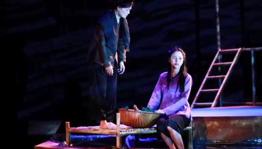 Cảnh trong vở "Bến nước thời gian" của Nhà hát Tuổi trẻ. Ảnh: Ban tổ chức cung cấp.