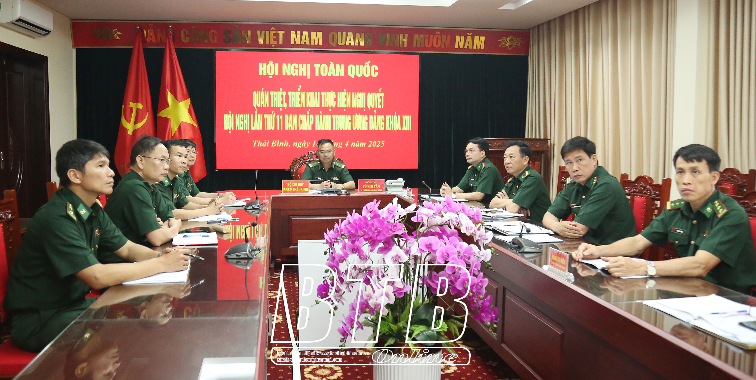 Đại biểu dự tại điểm cầu Bộ Chỉ huy Bộ đội Biên phòng tỉnh. (Ảnh: Tiến Đạt)