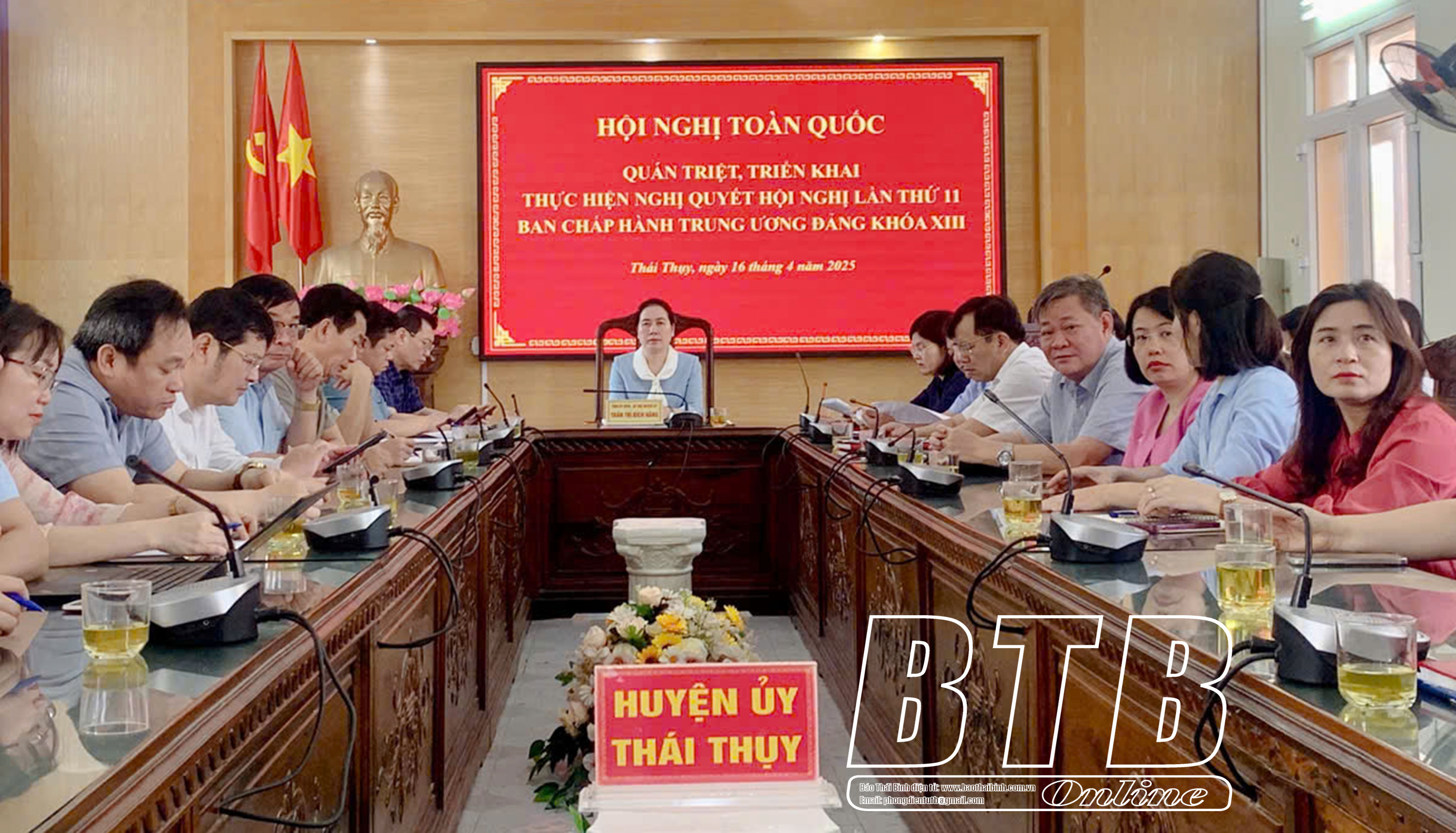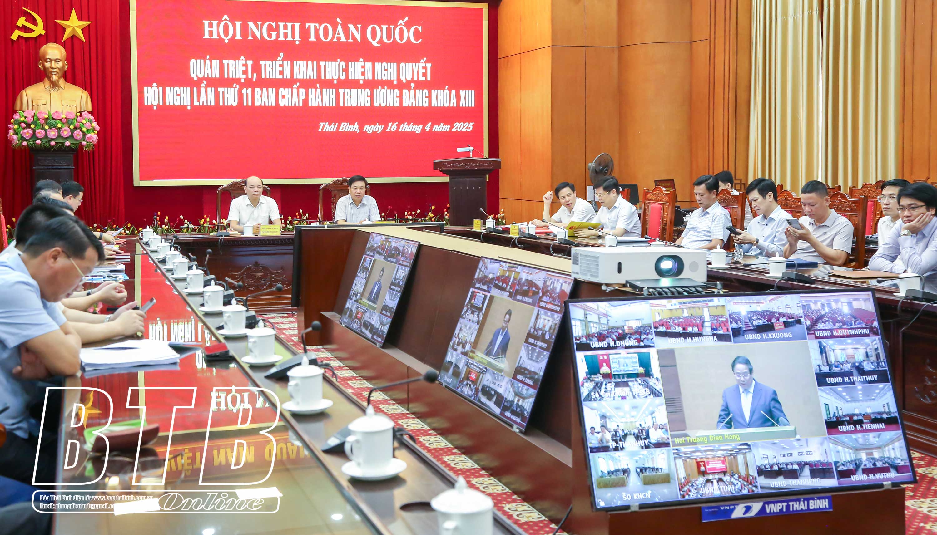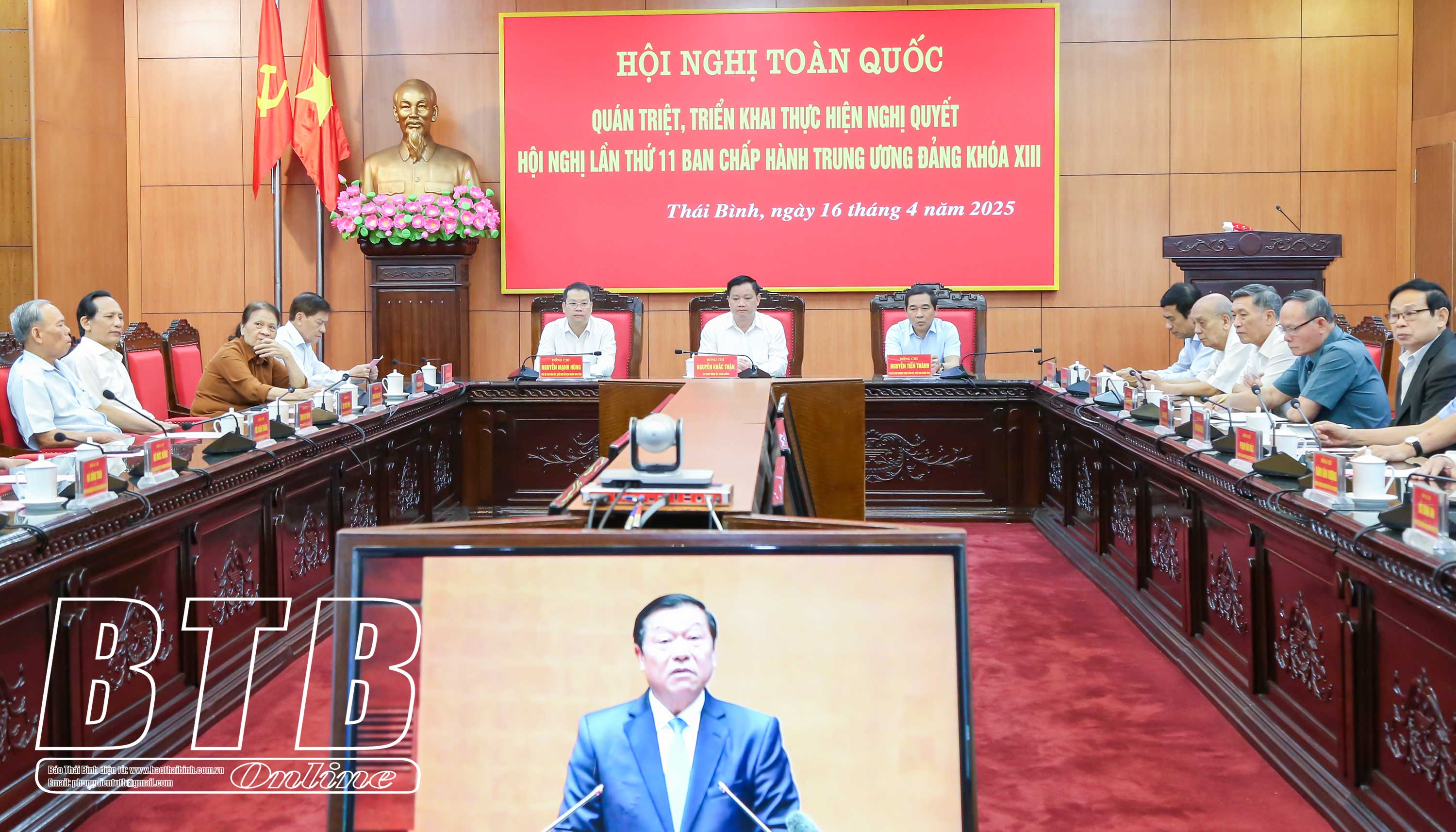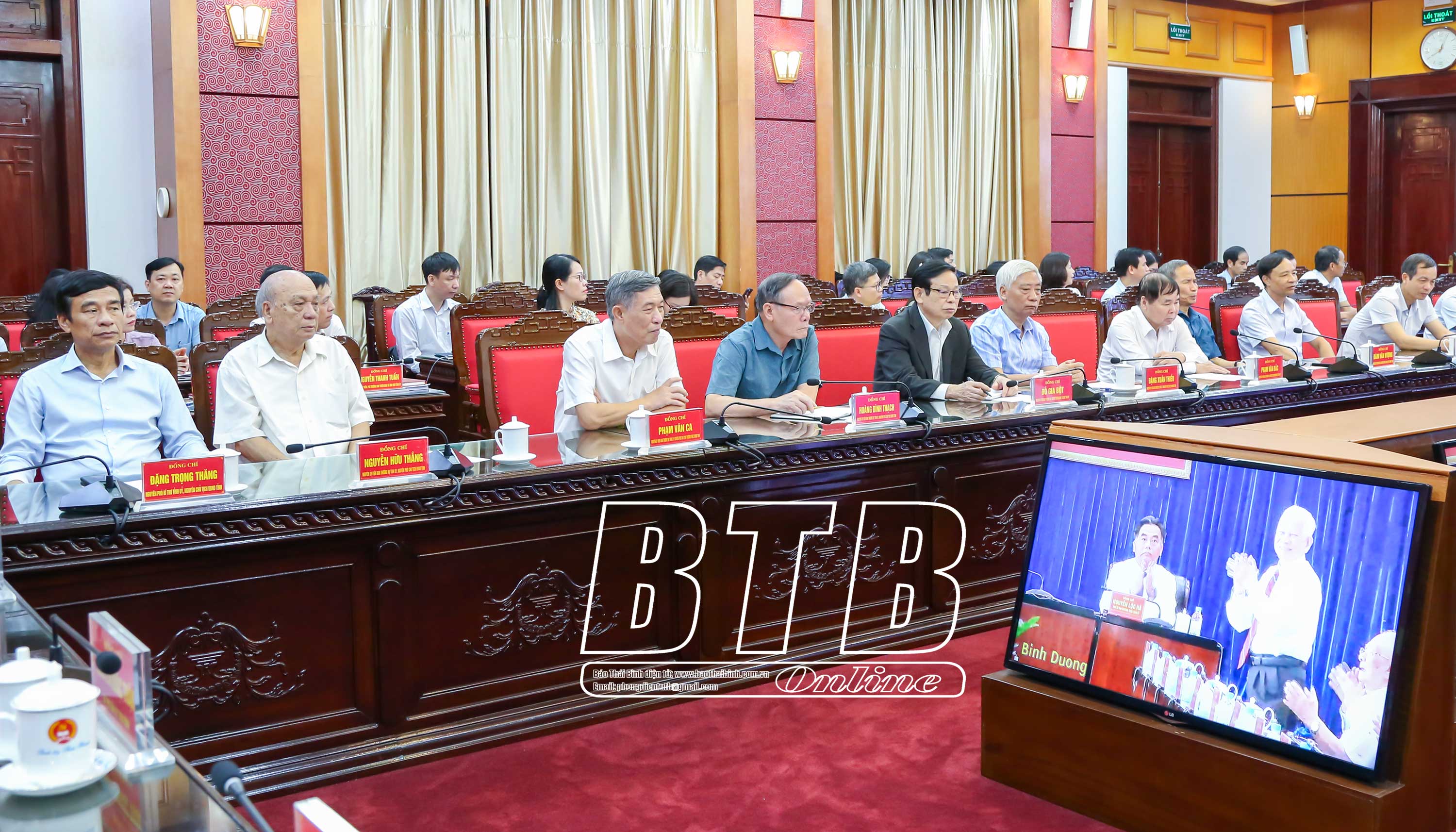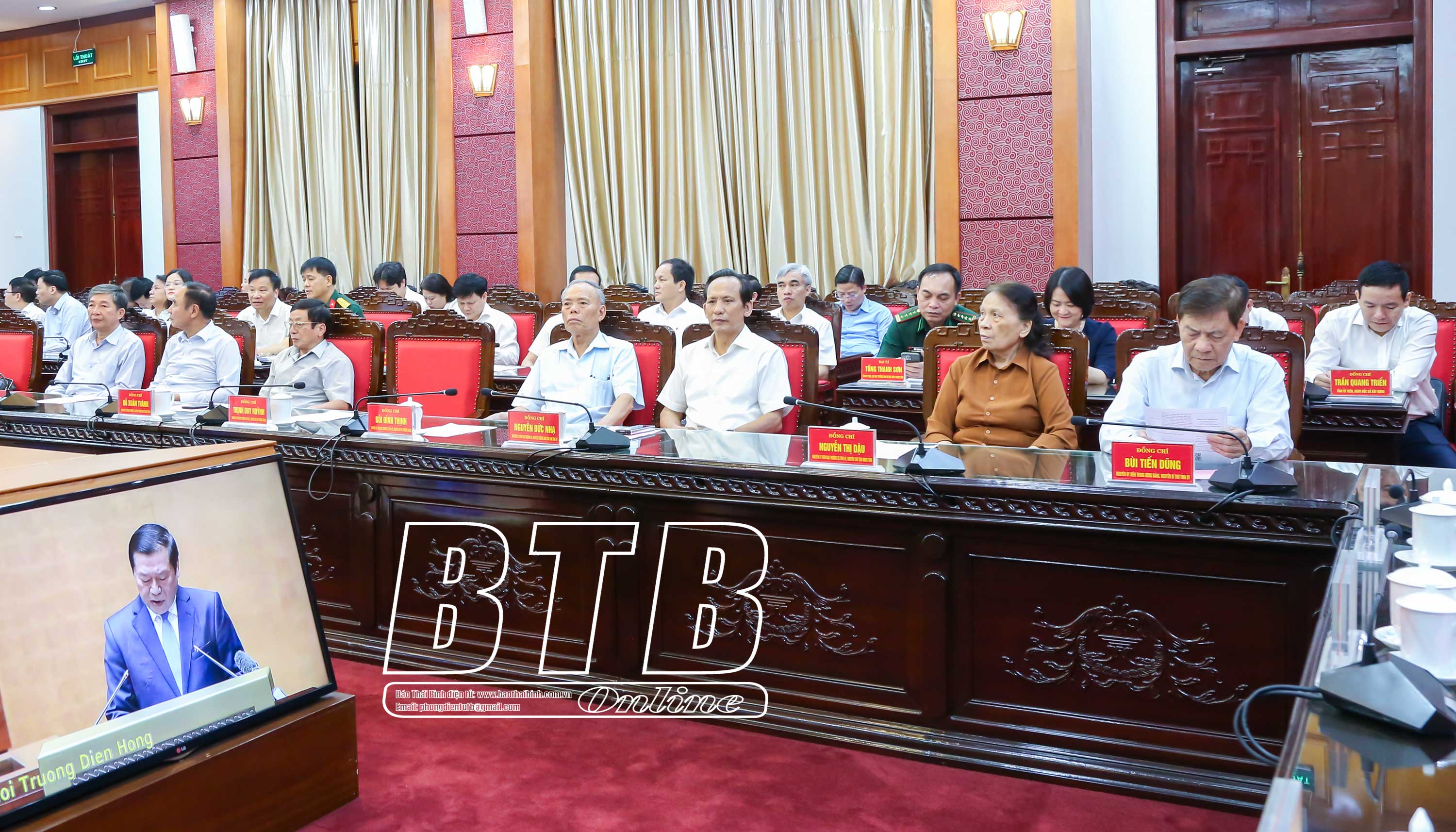 Dự hội nghị tại điểm cầu trụ sở Tỉnh ủy và UBND tỉnh Thái Bình có các đồng chí: Nguyễn Khắc Thận, Bí thư Tỉnh ủy; Nguyễn Tiến Thành, Phó Bí thư thường trực Tỉnh ủy, Chủ tịch HĐND tỉnh; Nguyễn Mạnh Hùng, Phó Bí thư Tỉnh ủy, Chủ tịch UBND tỉnh và các đồng chí Ủy viên Ban Thường vụ Tỉnh ủy; nguyên Ủy viên Ban Thường vụ Tỉnh ủy, lãnh đạo HĐND, UBND tỉnh, Đoàn đại biểu Quốc hội tỉnh; lãnh đạo các sở, ban, ngành, đoàn thể của tỉnh. Ngoài ra, hội nghị được kết nối tới 367 điểm cầu trong toàn tỉnh với trên 31.200 đại biểu cán bộ, đảng viên tham dự.