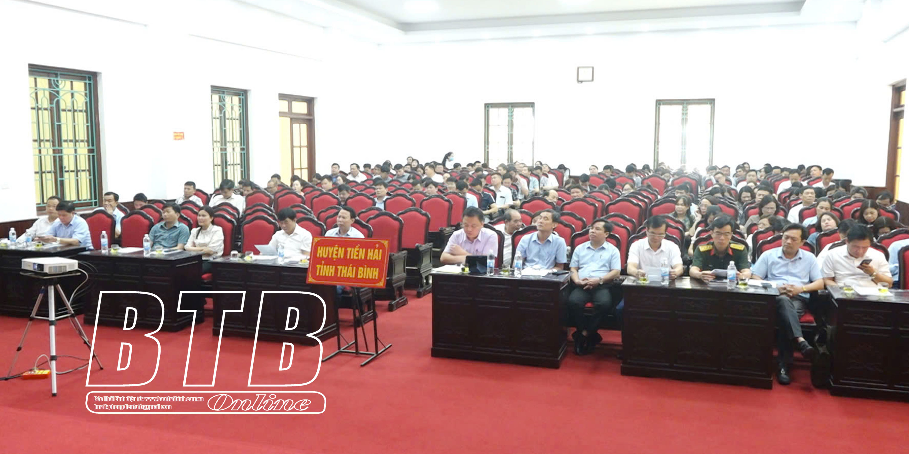 Các đại biểu dự hội nghị tại điểm cầu huyện Tiền Hải. (Ảnh: CTV Trí Tuệ)