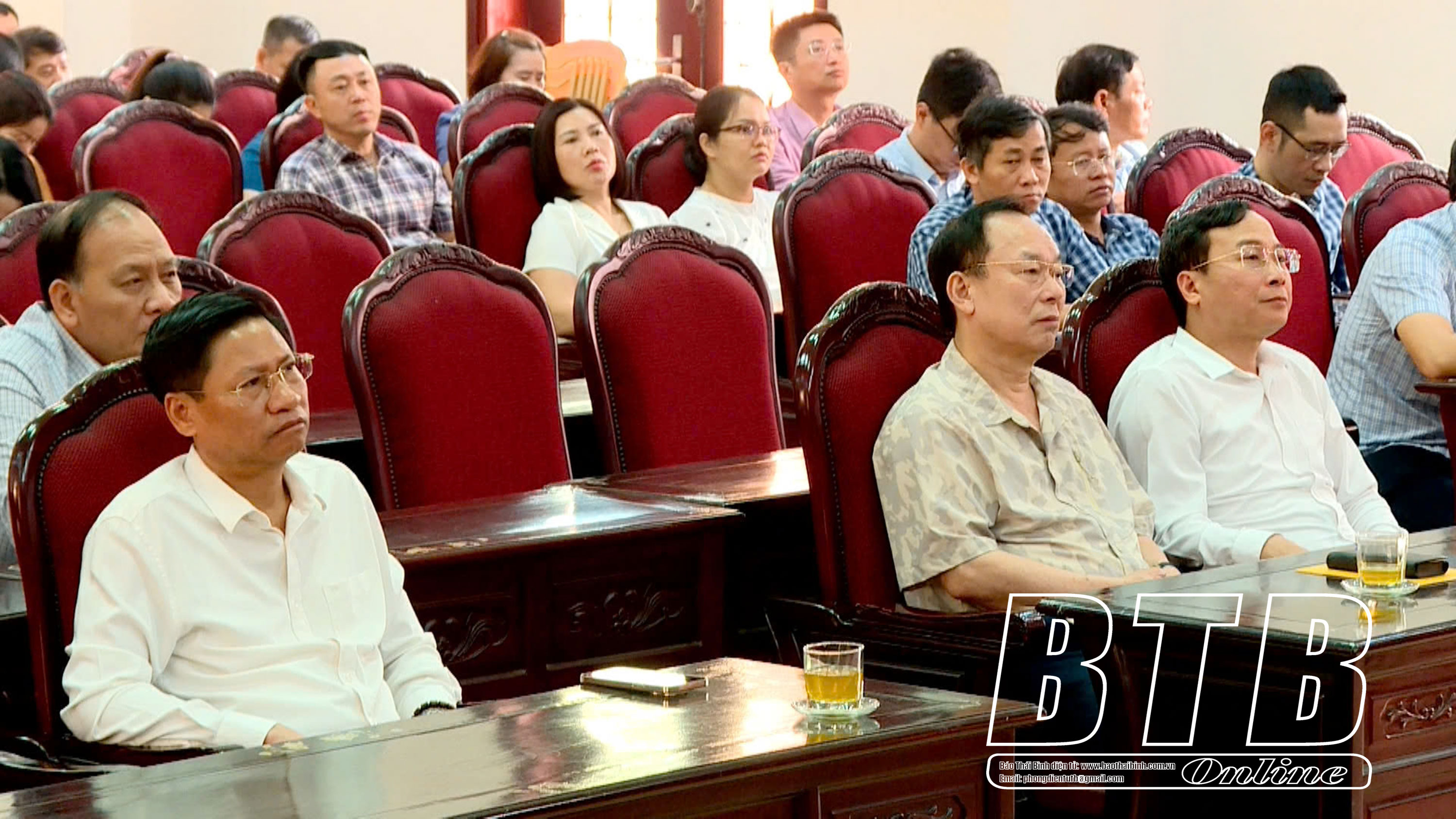 Các đại biểu dự hội nghị tại điểm cầu thành phố Thái Bình. (Ảnh: CTV Hải Thọ)