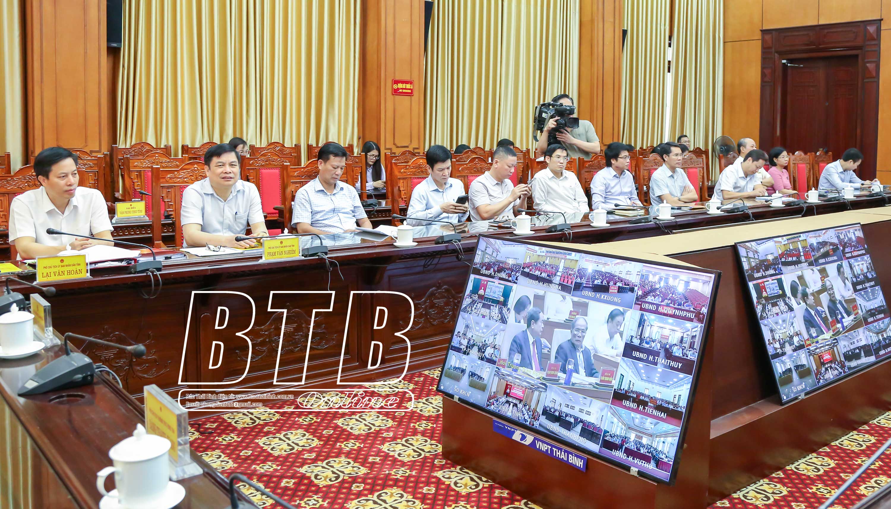 Các điểm cầu tỉnh Thái Bình tham dự hội nghị. (Ảnh: Trịnh Cường)