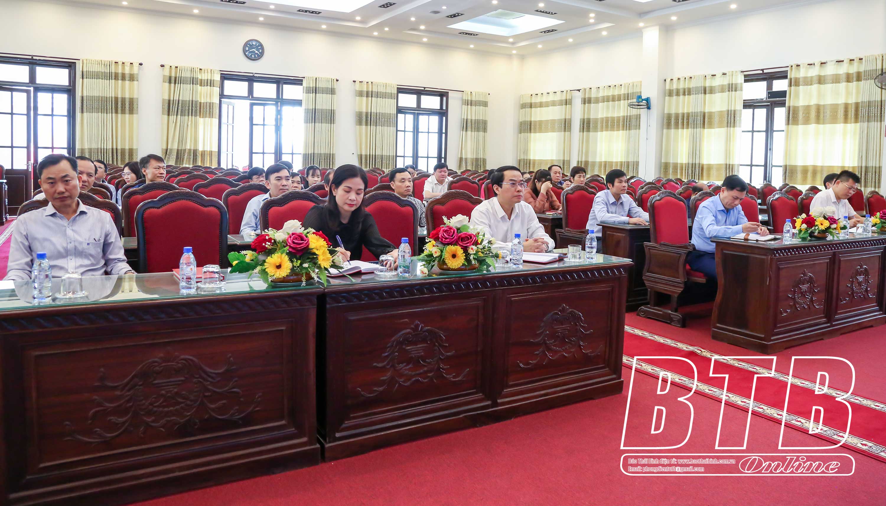 Các đại biểu dự hội nghị tại điểm cầu huyện Vũ Thư. (Ảnh: CTV Đức Nhã)