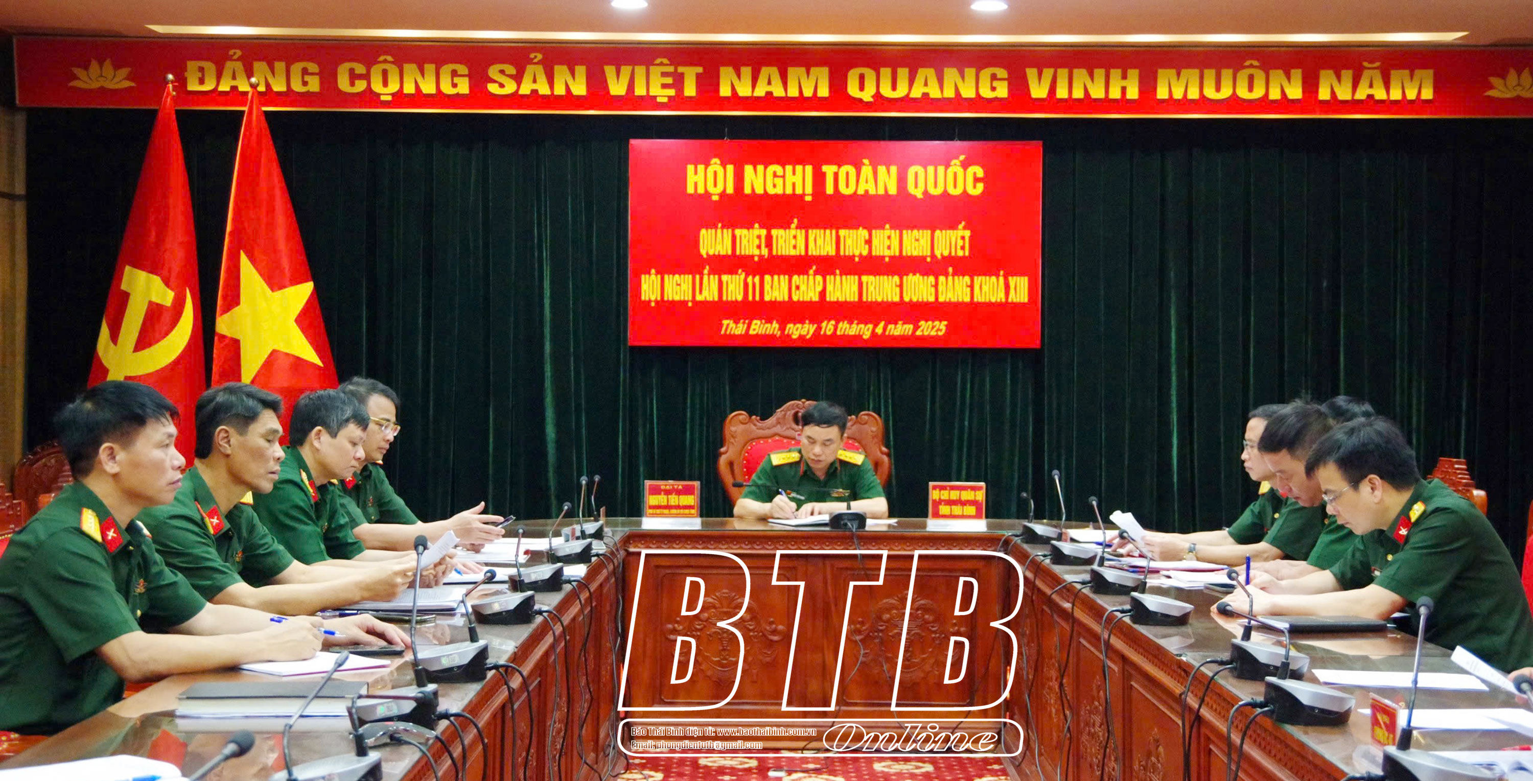 Các đại biểu dự hội nghị tại điểm cầu Bộ Chỉ huy Quân sự tỉnh. (Ảnh: Tiến Đạt)