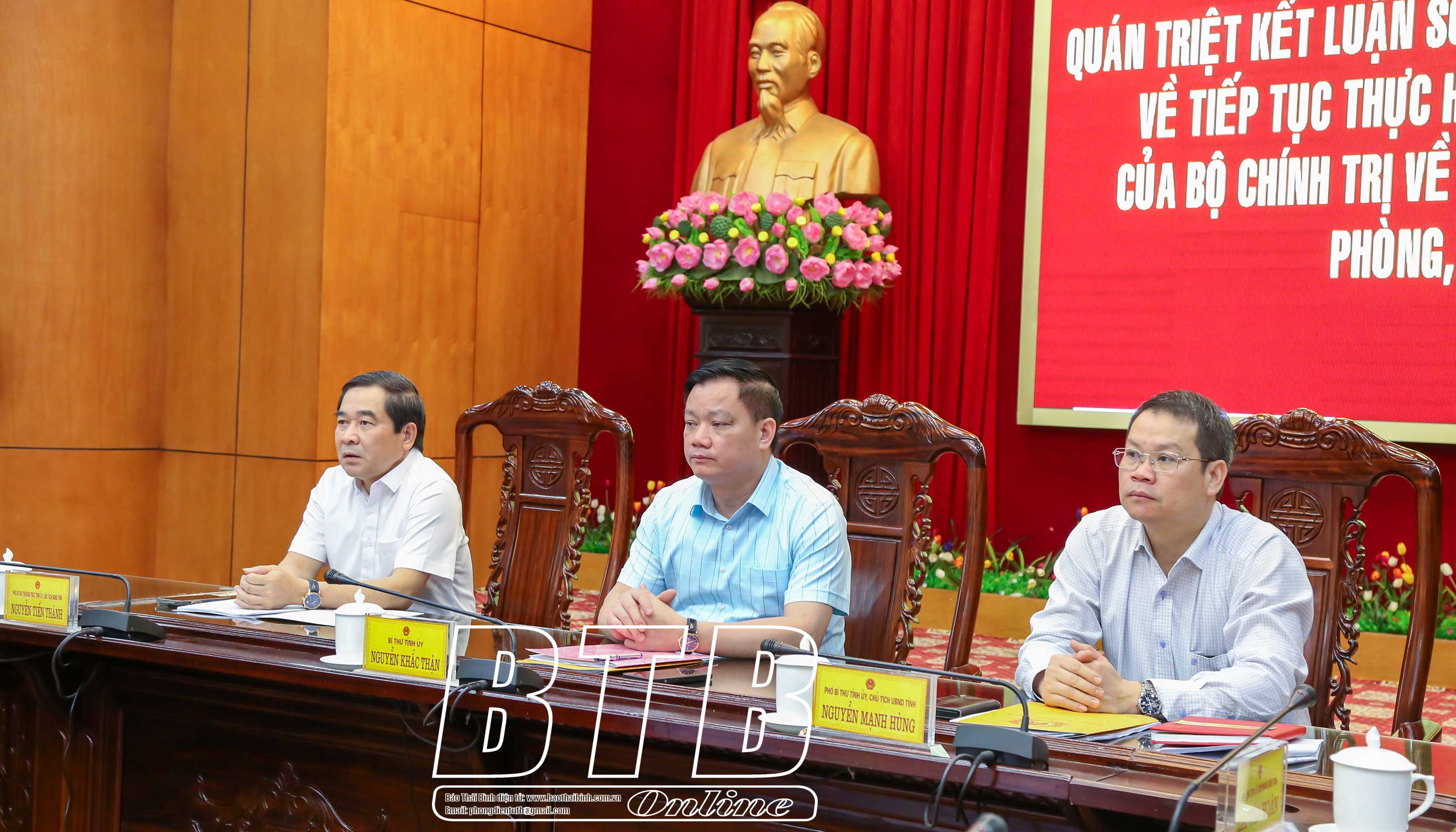 Chủ trì hội nghị có các đồng chí: Trần Cẩm Tú, Ủy viên Bộ Chính trị, Thường trực Ban Bí thư; Lê Thành Long, Ủy viên Trung ương Đảng, Phó Thủ tướng Chính phủ, Chủ tịch Ủy ban Quốc gia phòng, chống AIDS, ma túy, mại dâm; Đại tướng Lương Tam Quang, Ủy viên Bộ Chính trị, Bộ trưởng Bộ Công an. Tại điểm cầu Thái Bình, dự hội nghị có các đồng chí: Nguyễn Khắc Thận, Bí thư Tỉnh ủy; Nguyễn Tiến Thành, Phó Bí thư thường trực Tỉnh ủy, Chủ tịch HĐND tỉnh; Nguyễn Mạnh Hùng, Phó Bí thư Tỉnh ủy, Chủ tịch UBND tỉnh; các đồng chí Ủy viên Ban Thường vụ Tỉnh ủy, lãnh đạo UBND tỉnh và đại diện các sở, ngành liên quan.