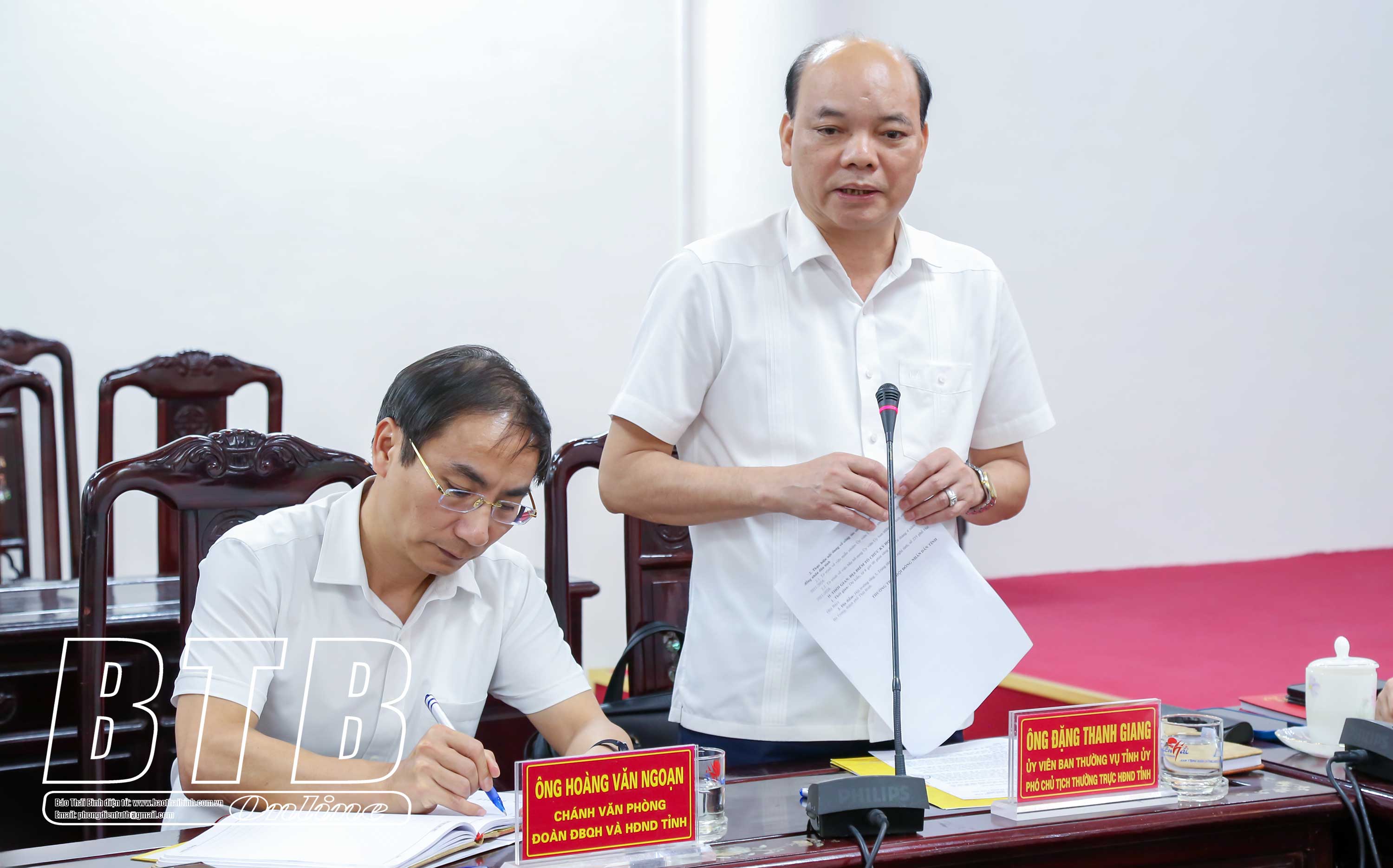 Phát biểu kết luận, đồng chí Nguyễn Tiến Thành, Phó Bí thư thường trực Tỉnh uỷ, Chủ tịch HĐND tỉnh cơ bản thống nhất với nội dung, thời điểm dự kiến diễn ra kỳ họp. Đề nghị các cơ quan, đơn vị phối hợp chặt chẽ, khẩn trương hoàn thiện tờ trình bảo đảm chất lượng, đúng quy định pháp luật, trên cơ sở đó chuyển cho các ban HĐND tỉnh tổ chức thẩm tra và các đại biểu có thời gian nghiên cứu đóng góp ý kiến chất lượng tại kỳ họp. Văn phòng Đoàn đại biểu Quốc hội và HĐND tỉnh phối hợp với các đơn vị liên quan chuẩn bị chu đáo các điều kiện phục vụ kỳ họp.
