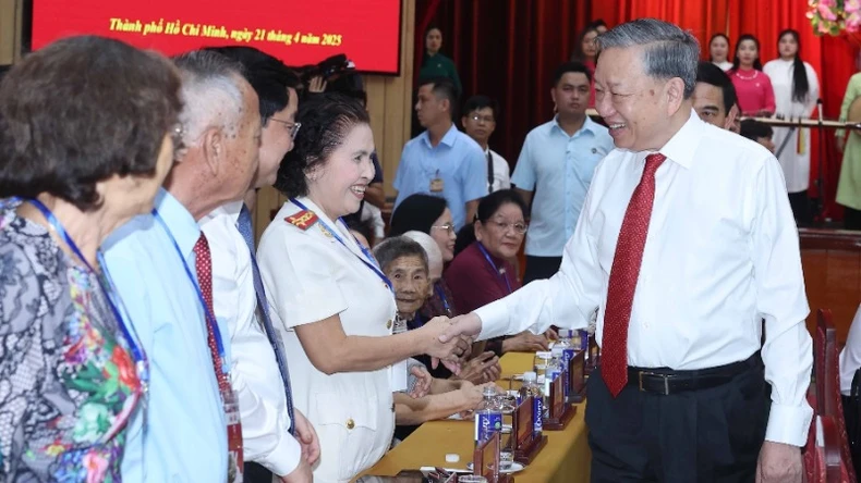 Tổng Bí thư Tô Lâm thăm hỏi ân cần và chúc các đại biểu sức khỏe, hạnh phúc, tiếp tục dành sự quan tâm, đóng góp ý kiến tâm huyết, trí tuệ cho sự nghiệp cách mạng vẻ vang của Đảng ta, nhân dân ta và cho địa phương nơi đang cư trú, sinh sống.