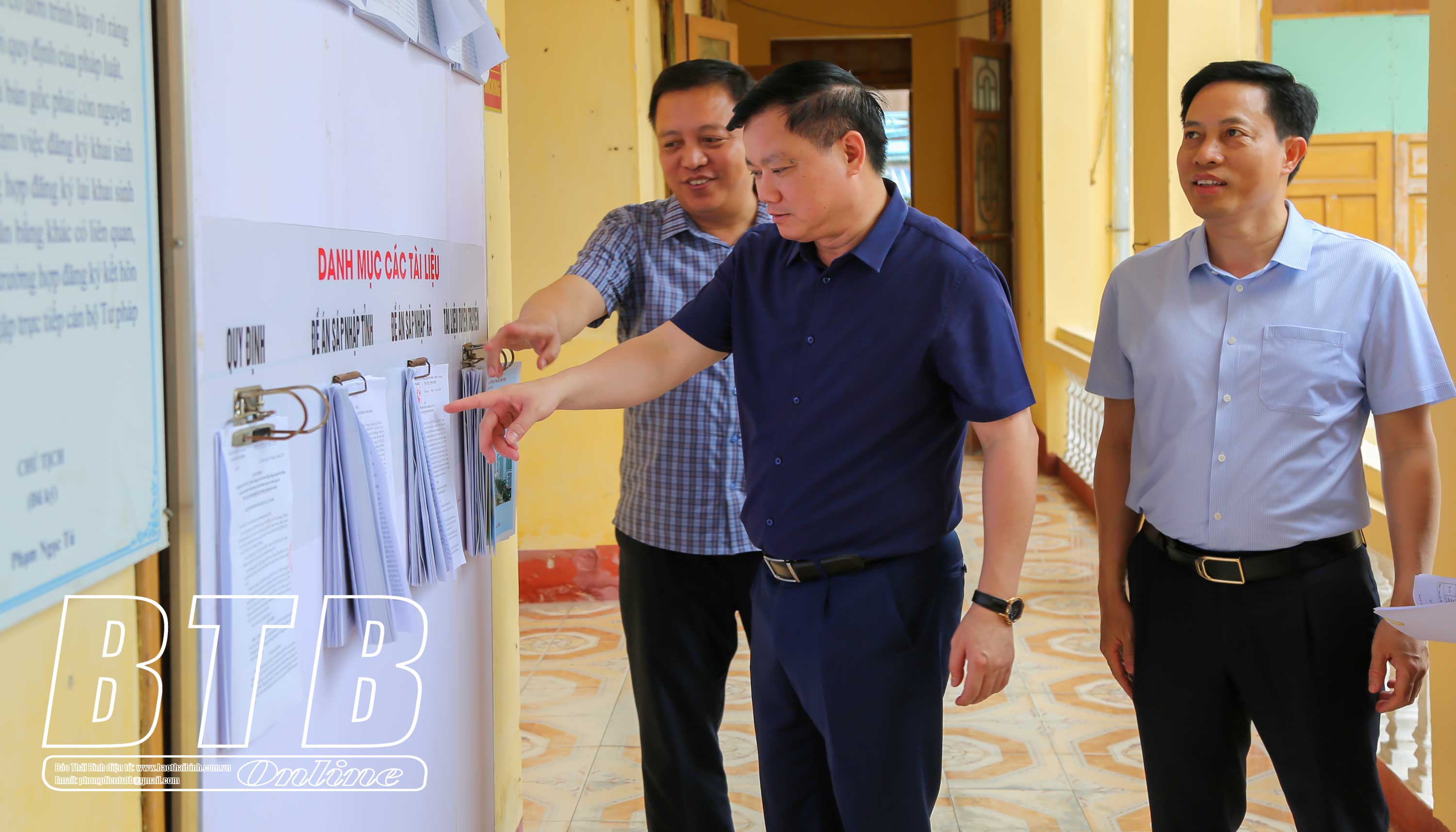 Đồng chí Nguyễn Khắc Thận, Bí thư Tỉnh ủy kiểm tra công tác tổ chức lấy ý kiến nhân dân về hợp nhất, sắp xếp đơn vị hành chính cấp tỉnh, cấp xã