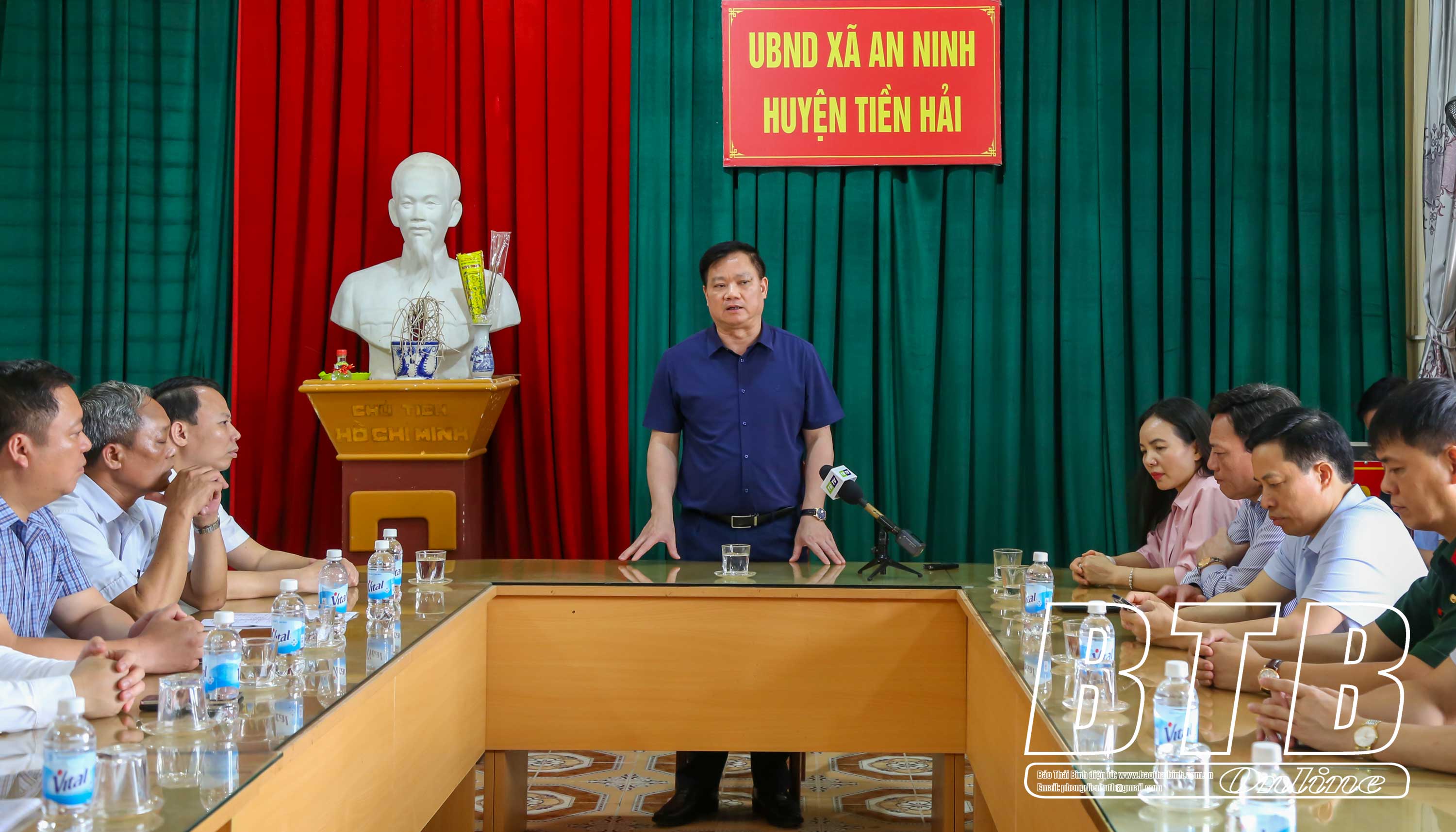 Đồng chí Nguyễn Khắc Thận, Bí thư Tỉnh ủy kiểm tra công tác lấy ý kiến cử tri về việc sắp xếp đơn vị hành chính cấp tỉnh, cấp xã tại xã An Ninh (Tiền Hải).