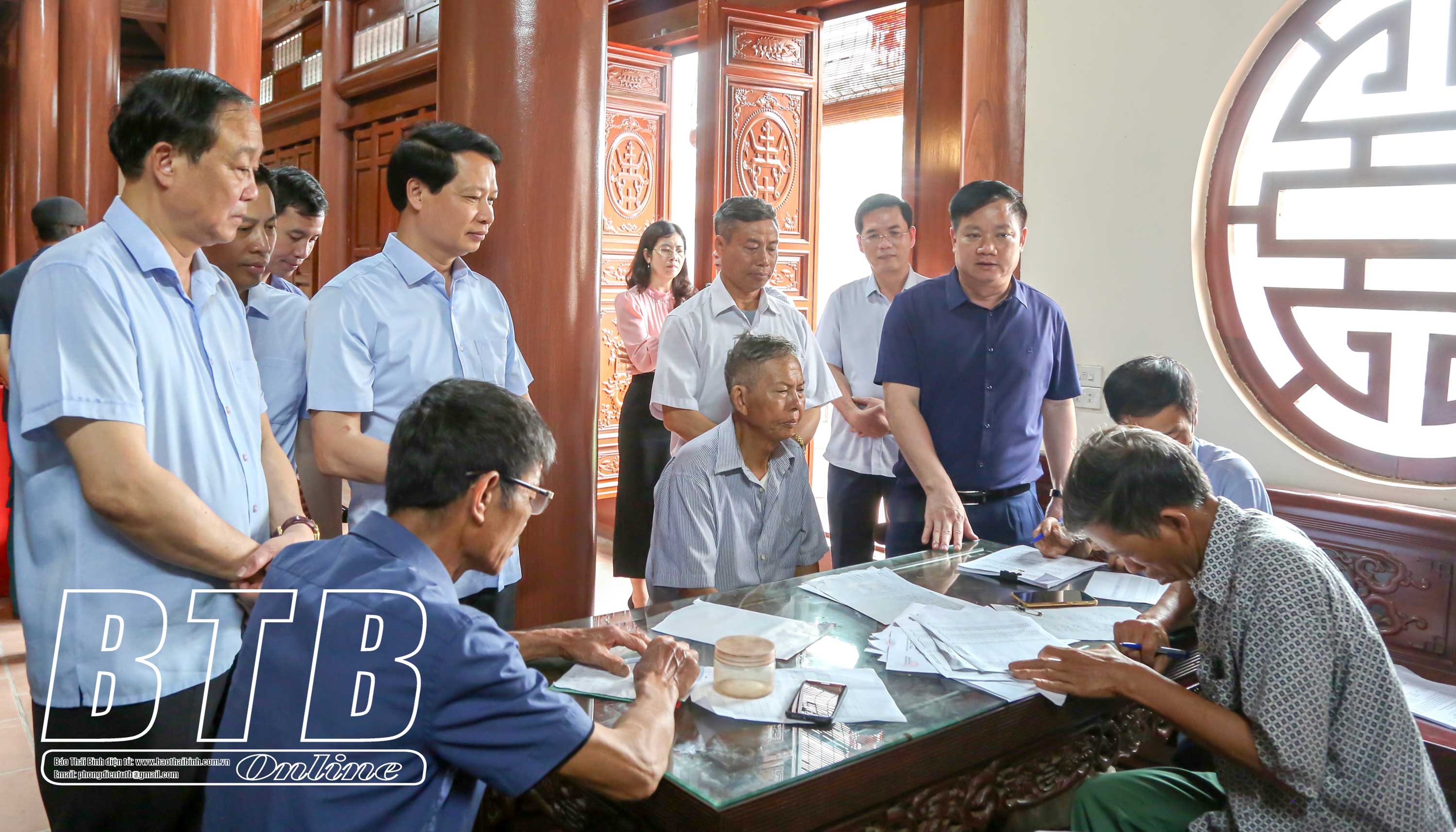 Đồng chí Nguyễn Khắc Thận, Bí thư Tỉnh ủy kiểm tra công tác lấy ý kiến cử tri về việc sắp xếp đơn vị hành chính cấp tỉnh, cấp xã tại thôn Phụng Công, xã Quỳnh Hội (Quỳnh Phụ).