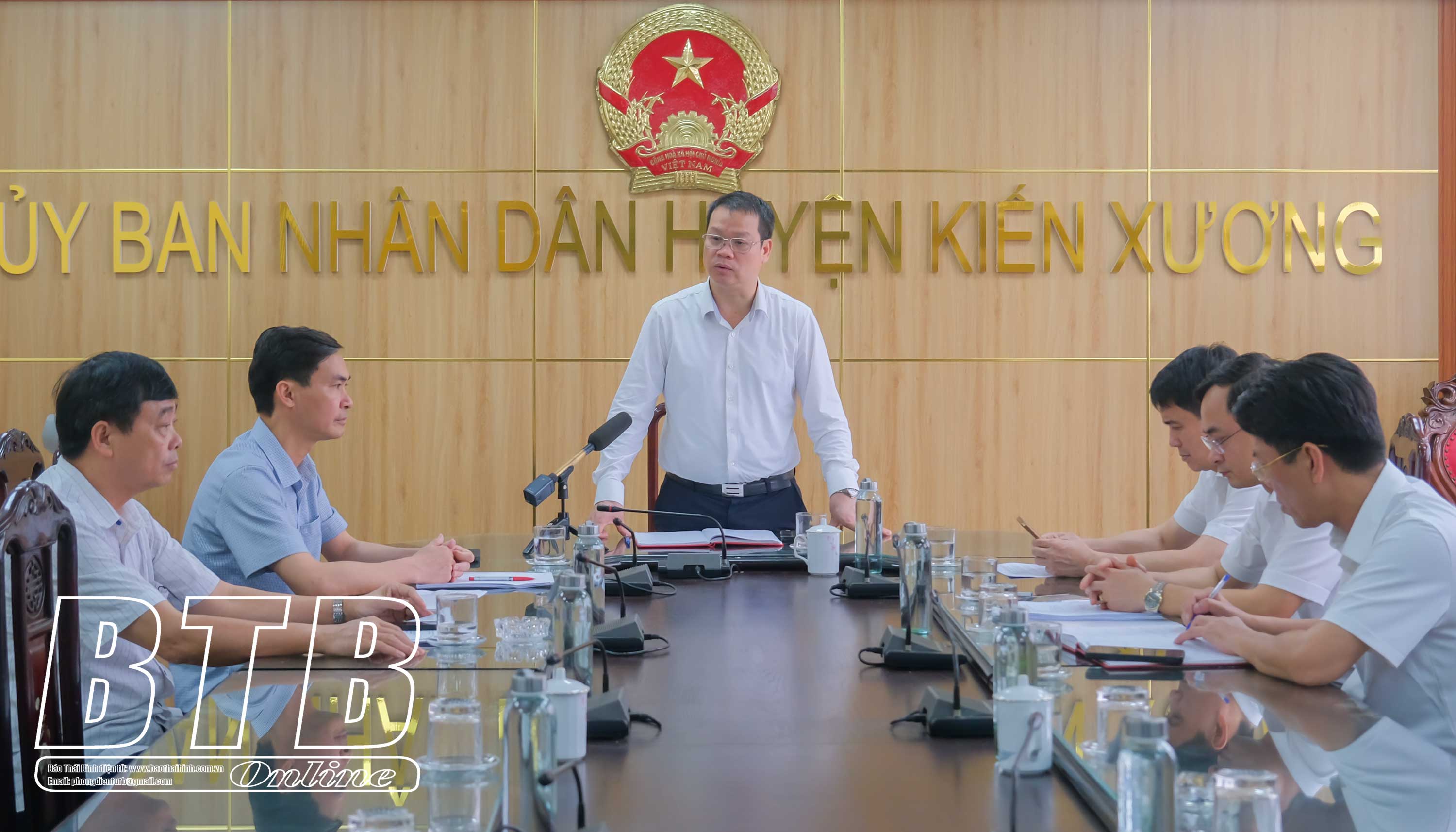Đồng chí Nguyễn Mạnh Hùng, Phó Bí thư Tỉnh ủy, Chủ tịch UBND tỉnh phát biểu tại buổi làm việc với huyện Kiến Xương.