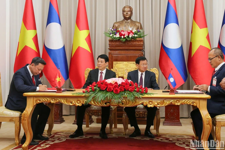 Sau hội đàm, Chủ tịch nước Lương Cường và Tổng Bí thư, Chủ tịch nước Lào đã chứng kiến Lễ ký kết các văn kiện hợp tác và trao giấy phép, bao gồm: Ý định thư giữa Bộ Quốc phòng Việt Nam và Bộ Quốc phòng Lào về việc Bộ Quốc phòng Việt Nam hỗ trợ xây dựng trụ sở Bộ Tư lệnh Bộ đội biên phòng, Quân đội nhân dân Lào; Chương trình hợp tác năm 2025 giữa Bộ Tư pháp Việt Nam và Bộ Tư pháp Lào; Bản ghi nhớ hợp tác giữa UBND tỉnh Gia Lai, Việt Nam và Chính quyền tỉnh Attapeu, Lào giai đoạn 2025-2030; Giấy phép đầu tư (điều chỉnh) Dự án thủy điện Xê-ca-mảng 3 tỉnh Sekong (phía Lào trao).