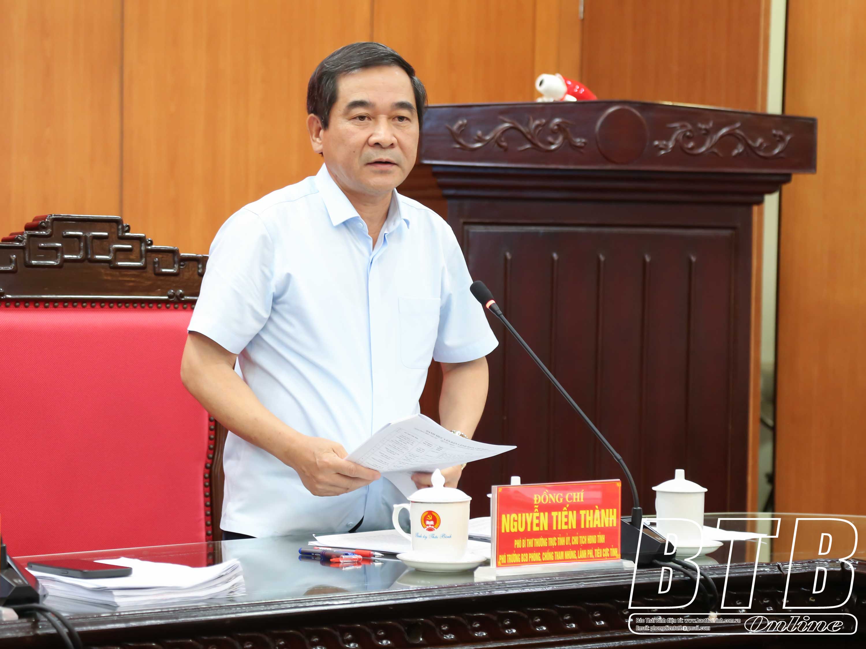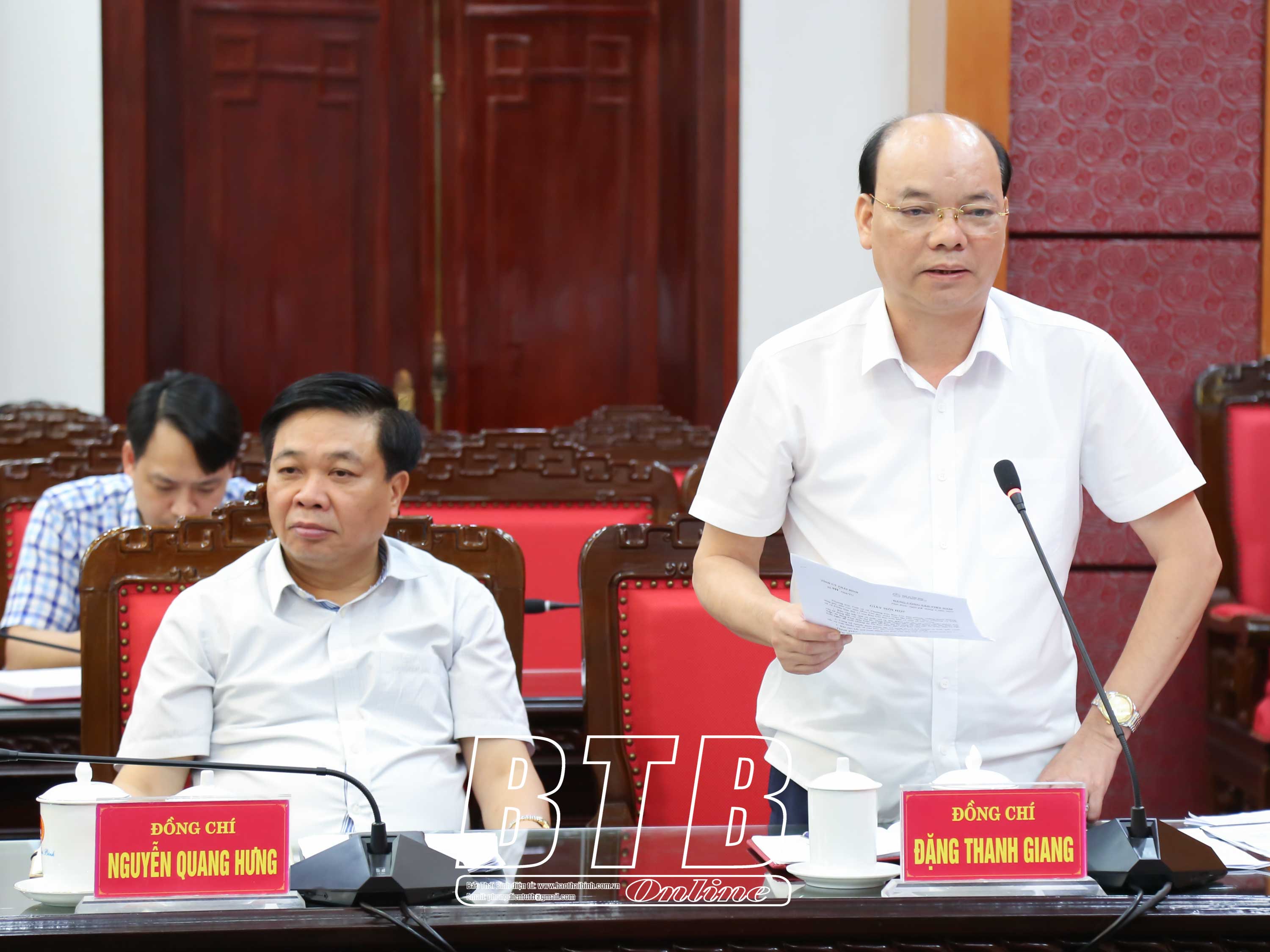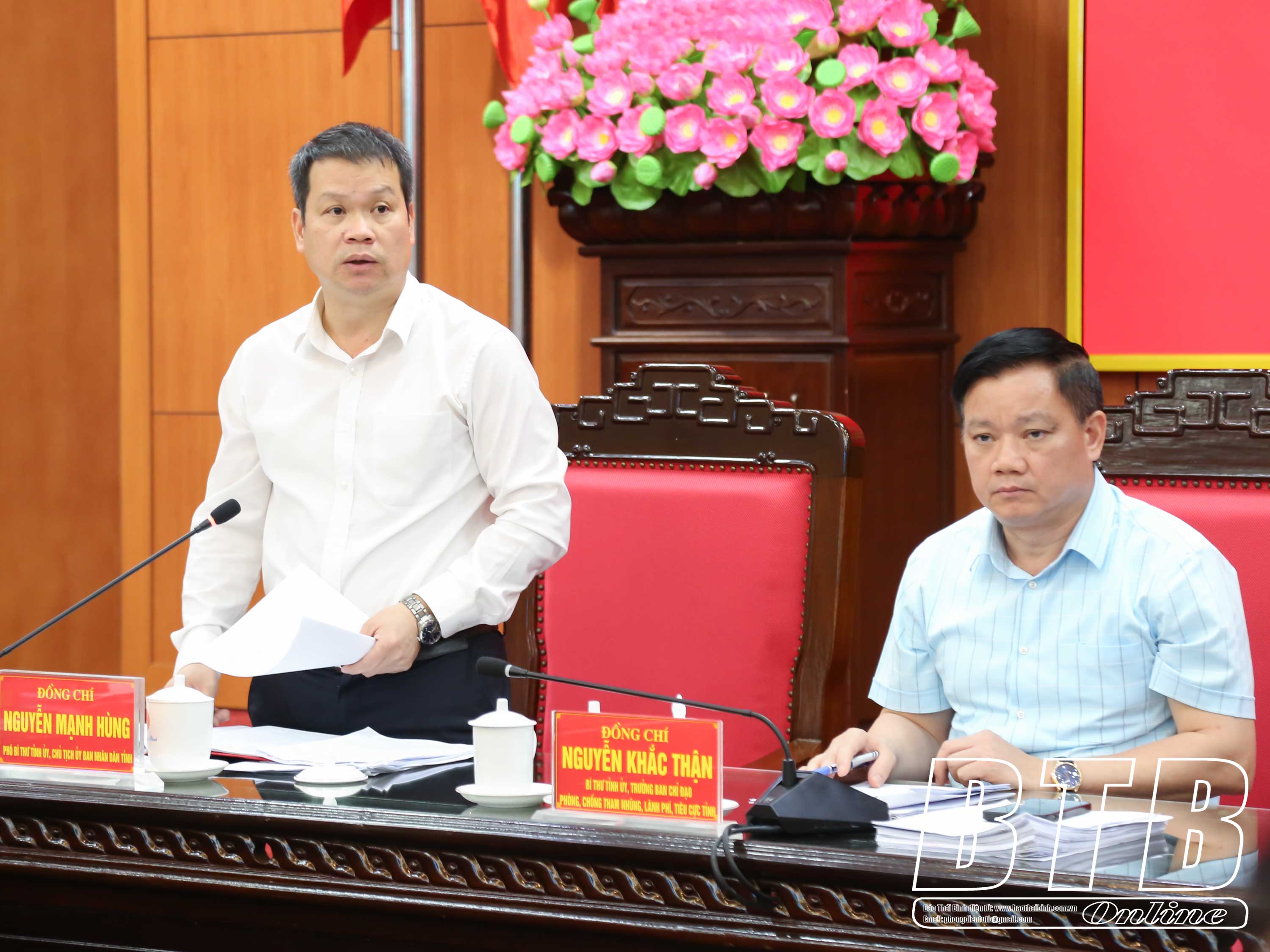 Đồng chí Nguyễn Mạnh Hùng, Phó Bí thư Tỉnh ủy, Chủ tịch UBND tỉnh phát biểu tại phiên họp. Đồng chí Đặng Thanh Giang, Ủy viên Ban Thường vụ Tỉnh ủy, Phó Chủ tịch thường trực HĐND tỉnh phát biểu tại phiên họp.Đồng chí Hoàng Thái Phúc, Ủy viên Ban Thường vụ, Trưởng ban Nội chính Tỉnh ủy, Phó Trưởng ban thường trực Ban Chỉ đạo Phòng, chống tham nhũng, lãng phí, tiêu cực tỉnh báo cáo tại phiên họp.