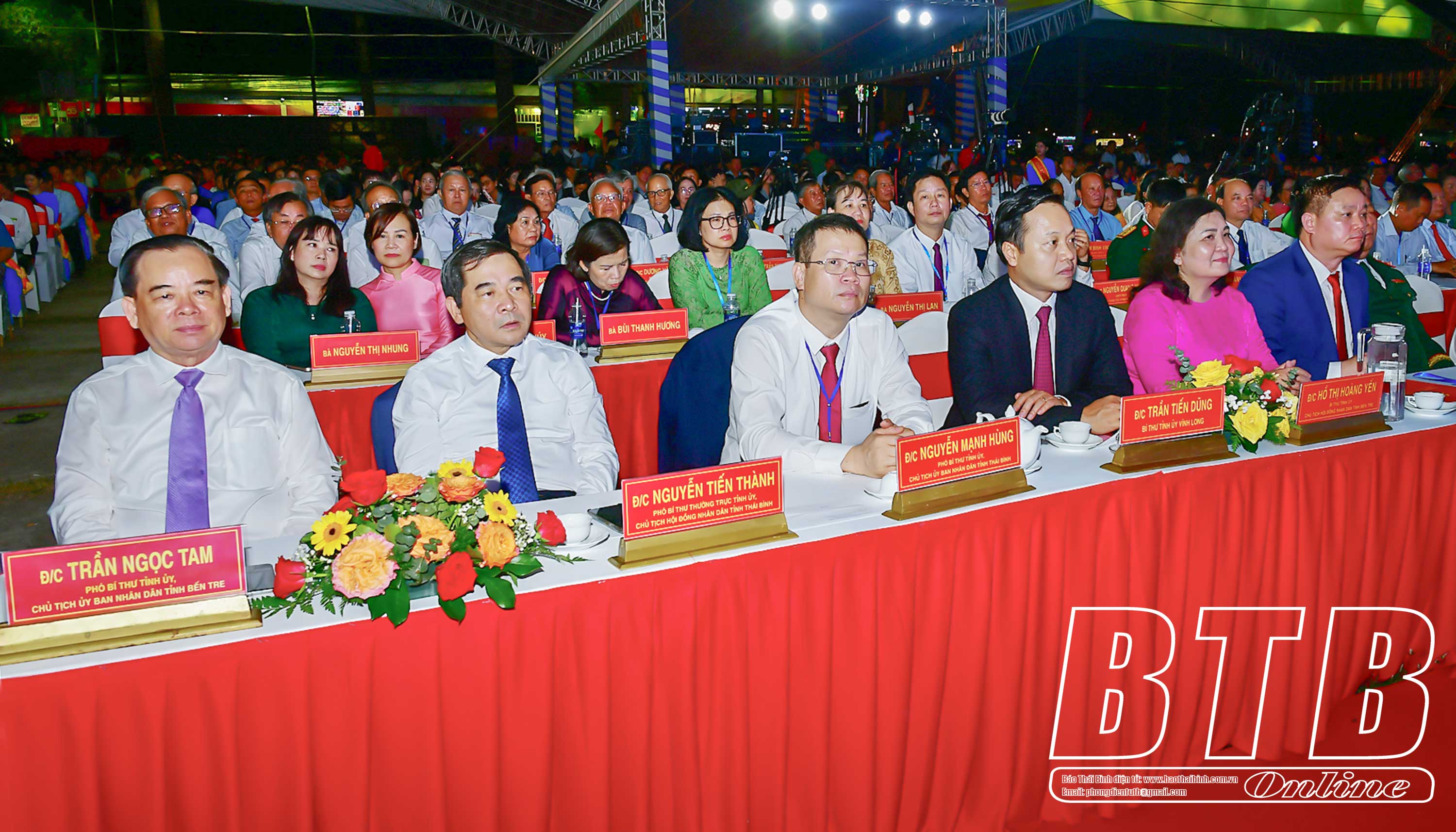 Dự lễ kỷ niệm về phía tỉnh Thái Bình có các đồng chí: Nguyễn Khắc Thận, Bí thư Tỉnh ủy; Nguyễn Tiến Thành, Phó Bí thư thường trực Tỉnh ủy, Chủ tịch HĐND tỉnh; Nguyễn Mạnh Hùng, Phó Bí thư Tỉnh ủy, Chủ tịch UBND tỉnh; các đồng chí Ủy viên Ban Thường vụ Tỉnh ủy; lãnh đạo HĐND, UBND, Ủy ban MTTQ tỉnh.