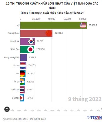 10 thị trường xuất khẩu lớn nhất của Việt Nam qua các năm