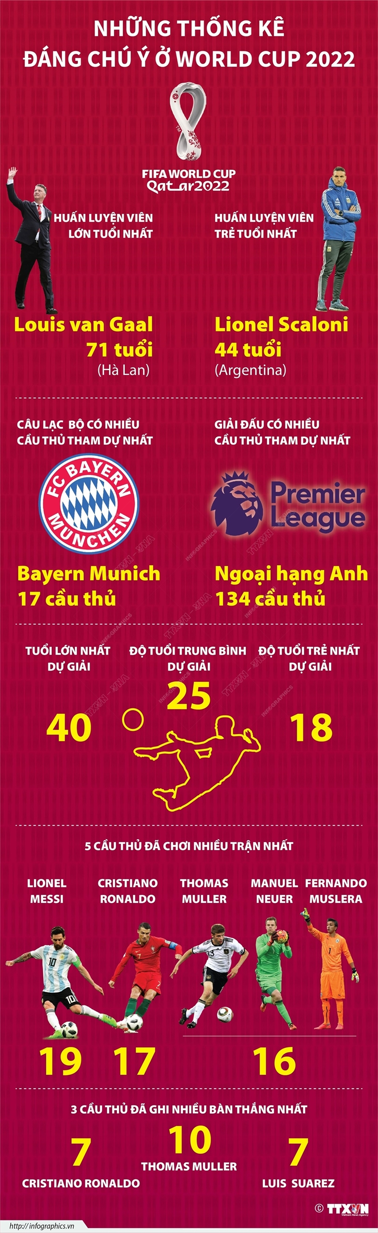 Vòng chung kết World Cup 2022 chuẩn bị khởi tranh tại Qatar. Dưới đây là một số thống kê đáng chú ý tại giải bóng đá lớn nhất hành tinh này.