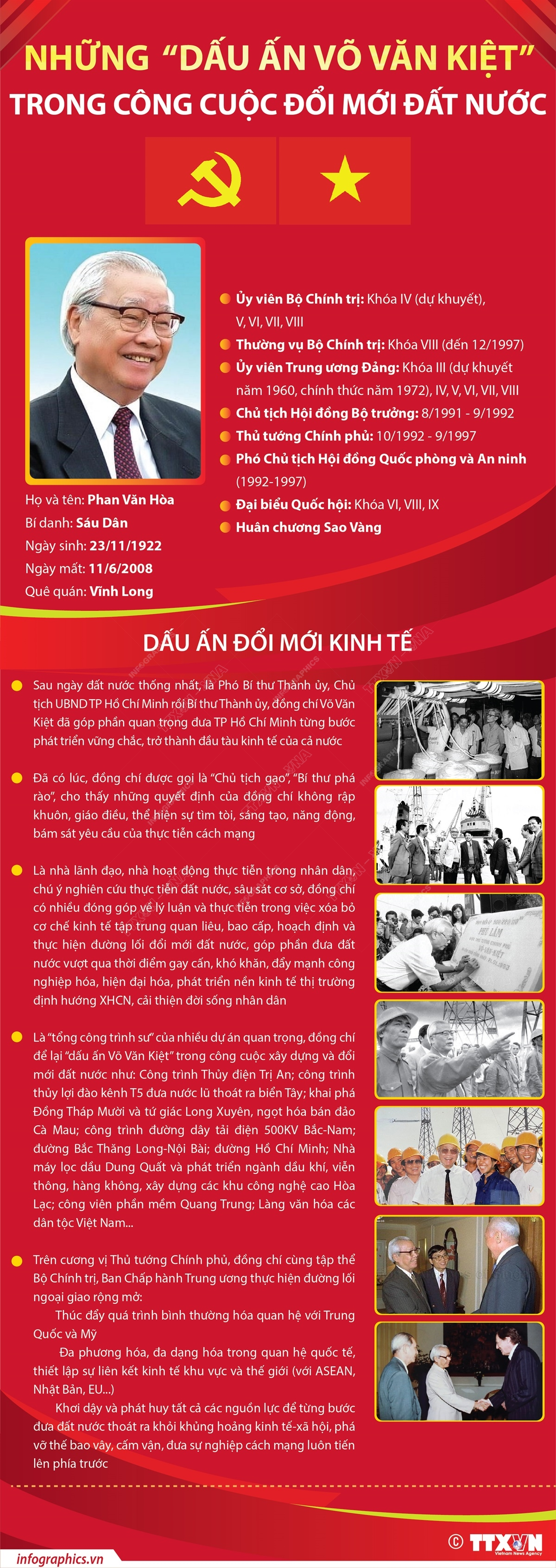 Cuộc đời, sự nghiệp cách mạng của Thủ tướng Võ Văn Kiệt - gần một thế kỷ là vô cùng phong phú, sinh động, thể hiện trên nhiều lĩnh vực và trải dài trên cả ba miền đất nước. Ông là một trong những người đi đầu trong công cuộc đổi mới ở Việt Nam, là “tổng công trình sư” của nhiều dự án táo bạo. Dù ở bất kỳ cương vị nào, ông luôn quan niệm: tất cả những ai nặng lòng với đất nước đều sẵn sàng xả thân cho sự nghiệp chung. Niềm tin ấy giúp ông thành công trong mọi bước đi. Đồng chí Võ Văn Kiệt sinh ngày 23/11/1922, cách đây tròn 100 năm.