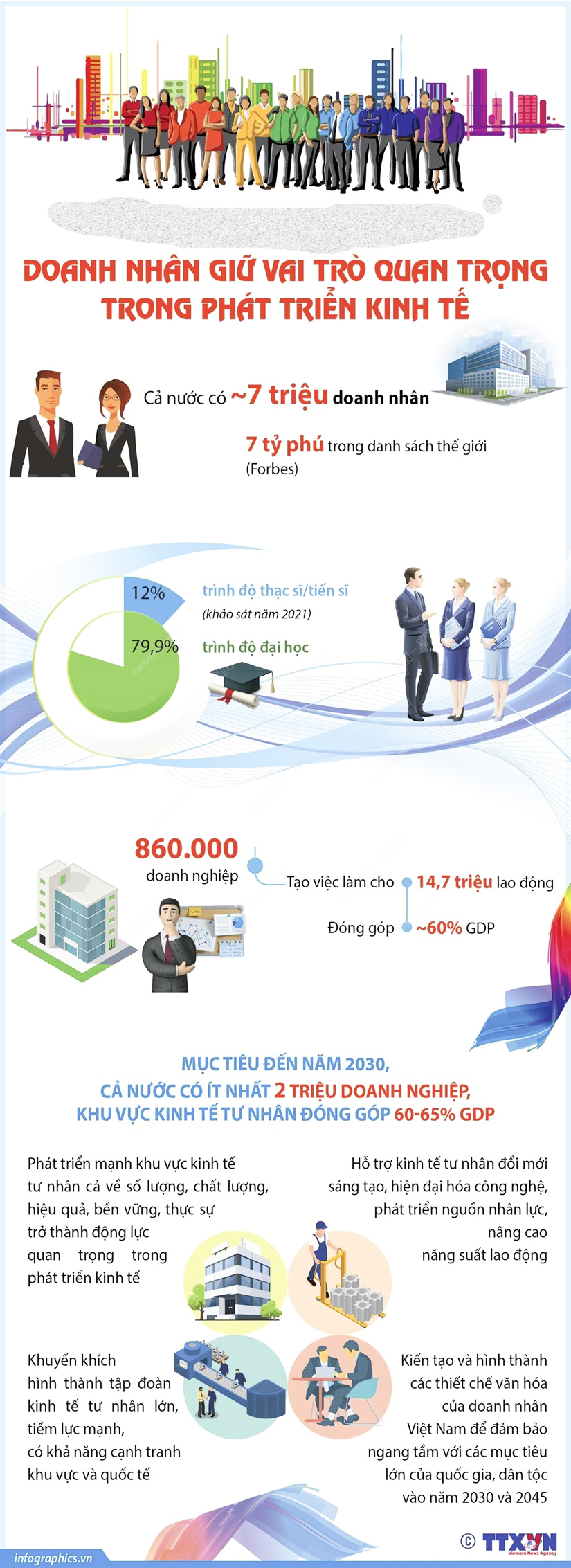 Doanh nhân Việt Nam hiện đang là lực lượng chủ lực trong việc thay đổi cơ cấu kinh tế quốc dân, đóng góp quan trọng vào tiến trình công nghiệp hóa, hiện đại hóa đất nước.