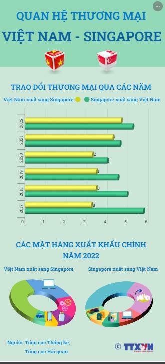 Thương mại song phương Việt Nam - Singapore phát triển mạnh mẽ và bền vững trong nhiều năm qua. Kim ngạch thương mại giữa hai nước tăng trưởng đều đặn, đạt 9,15 tỷ USD vào năm 2022, tăng 11,6% so với năm 2021.