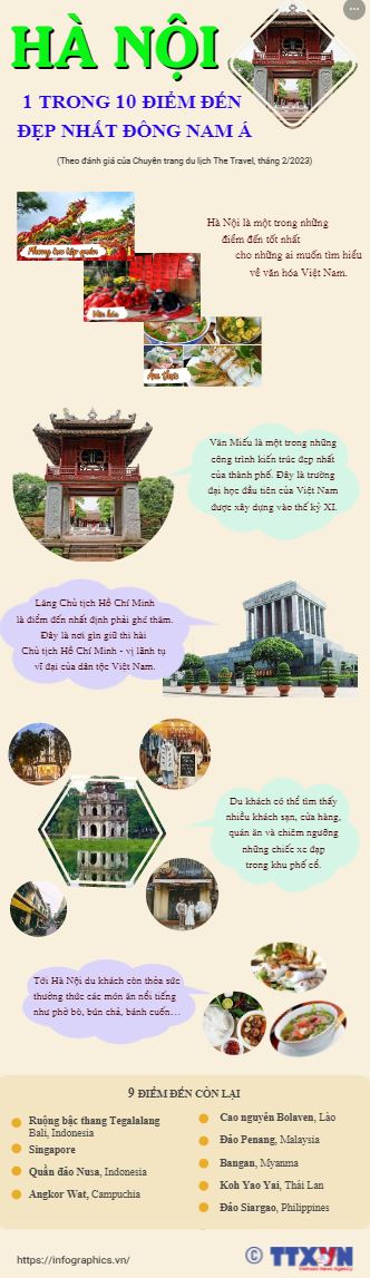 Chuyên trang du lịch The Travel đã giới thiệu đến du khách 10 điểm đến đẹp và hấp dẫn ở Đông Nam Á, trong đó có Hà Nội của Việt Nam.