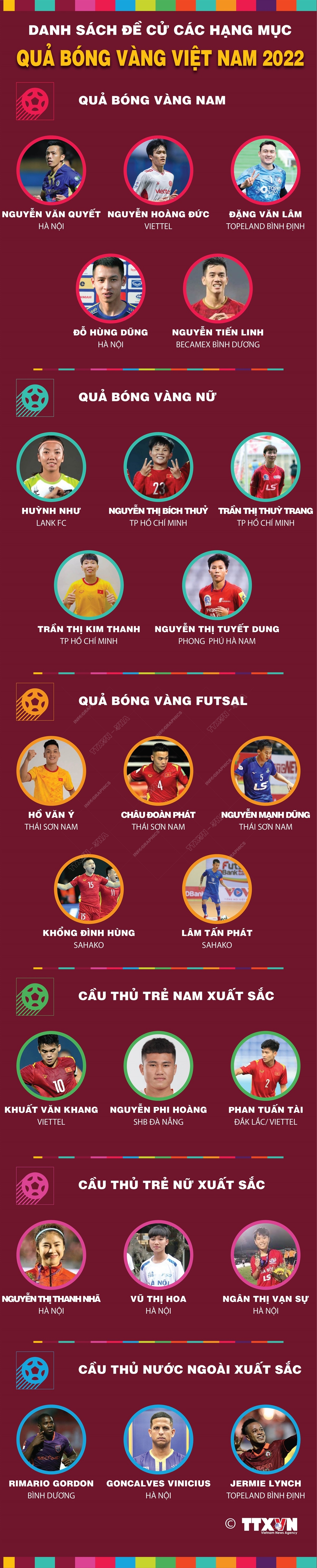 Danh sách đề cử các hạng mục Quả bóng Vàng Việt Nam 2022
