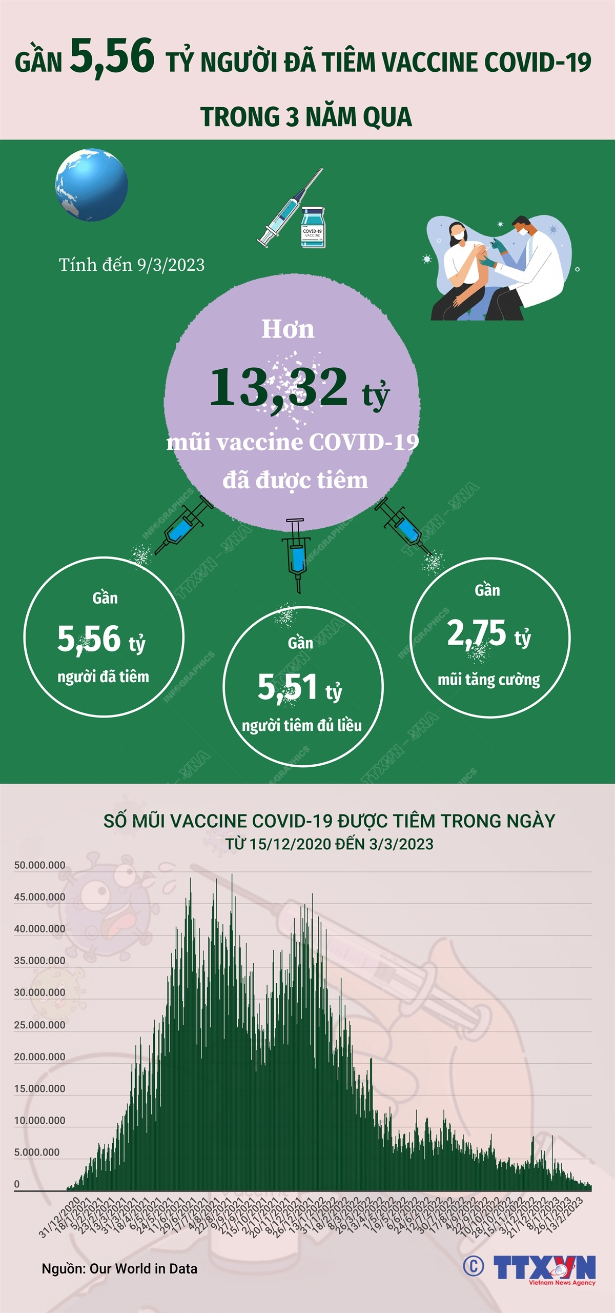Gần 5,56 tỷ người đã tiêm vaccine Covid-19 trong 3 năm qua