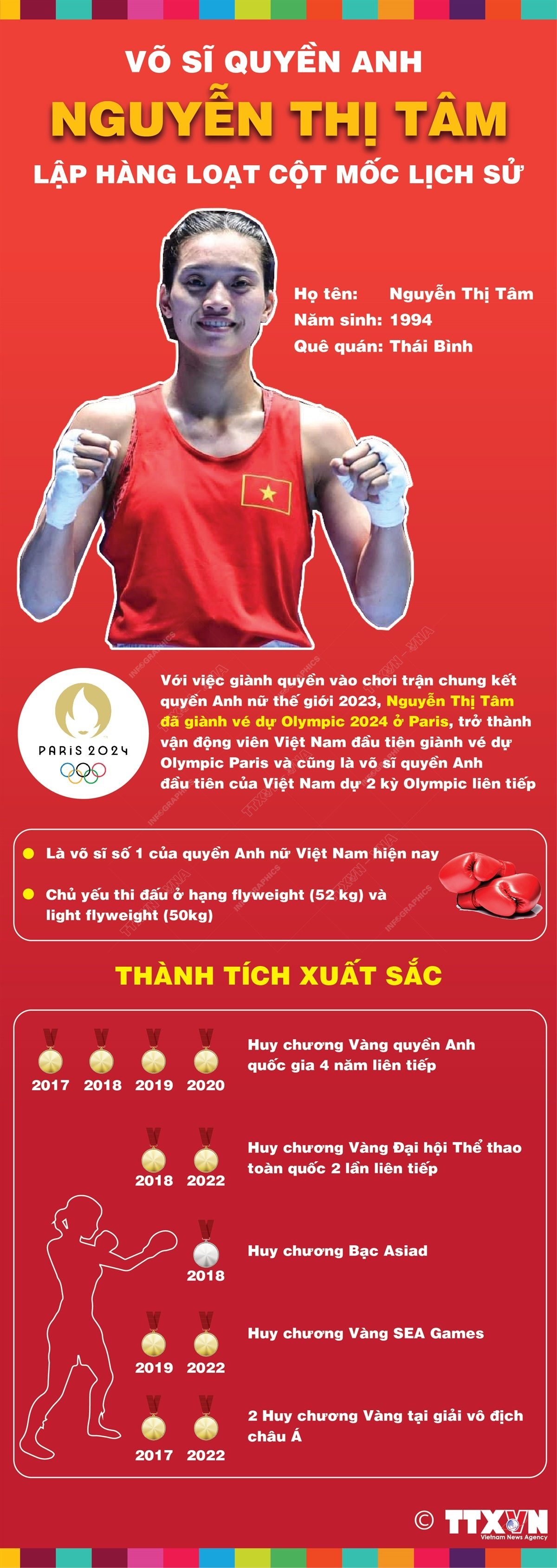 Võ sĩ quyền Anh Nguyễn Thị Tâm lập hàng loạt cột mốc lịch sử