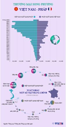 Kể từ khi thiết lập quan hệ song phương năm 1973 đến nay, Việt Nam và Pháp luôn tạo được dấu ấn trong quan hệ thương mại. Pháp hiện là đối tác thương mại hàng đầu và là thị trường xuất khẩu lớn thứ 4 của Việt Nam trong Liên minh châu Âu (EU). Năm 2022, kim ngạch thương mại giữa hai nước đạt 5,34 tỷ USD, mức cao thứ hai chỉ sau năm 2019 (5,38 tỷ USD). Tính riêng hai tháng đầu năm 2023, thương mại song phương đạt 0,78 tỷ USD, bằng 14,6% của cả năm trước.