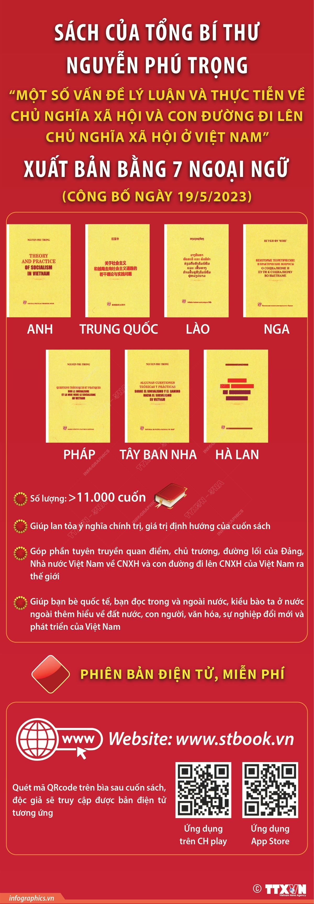 Ban Tuyên giáo Trung ương chủ trì, phối hợp với Ban Chỉ đạo Công tác thông tin đối ngoại Trung ương, Nhà xuất bản Chính trị quốc gia Sự thật vừa tổ chức Lễ công bố, giới thiệu sách “Một số vấn đề lý luận và thực tiễn về chủ nghĩa xã hội và con đường đi lên chủ nghĩa xã hội ở Việt Nam” của Tổng Bí thư Nguyễn Phú Trọng, xuất bản bằng 7 ngoại ngữ (Anh, Trung Quốc, Lào, Nga, Pháp, Tây Ban Nha và Hà Lan). Cuốn sách là tài liệu quý, tổng kết lý luận về đường lối đổi mới, những phát triển sáng tạo riêng có của Đảng Cộng sản Việt Nam về mô hình chủ nghĩa xã hội ở Việt Nam trên cơ sở vận dụng sáng tạo chủ nghĩa Marx-Lenin và tư tưởng Hồ Chí Minh, bởi vậy ngay sau khi ra mắt bạn đọc, cuốn sách đã nhận được những đánh giá tích cực và sự quan tâm sâu rộng của dư luận trong và ngoài nước.