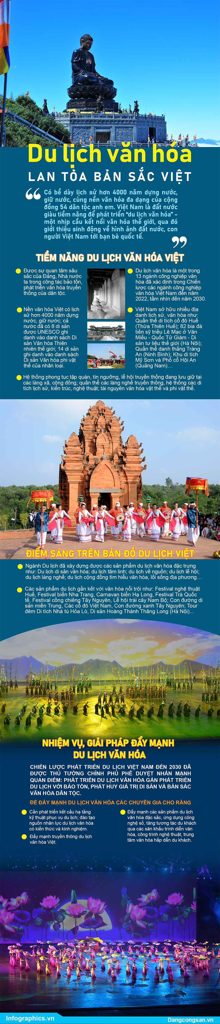 Việt Nam có bề dày lịch sử hàng nghìn năm dựng nước, giữ nước, cùng nền văn hóa đa dạng của cộng đồng 54 dân tộc anh em. Đây là nguồn tiềm năng văn hóa to lớn để phát triển loại hình “du lịch văn hóa”, qua đó tạo một nhịp cầu kết nối với những nền văn hóa thế giới, đồng thời khẳng định bản sắc Việt Nam trong thời kỳ hội nhập.