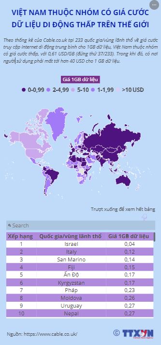 Việt Nam thuộc nhóm có giá cước dữ liệu di động thấp trên thế giới