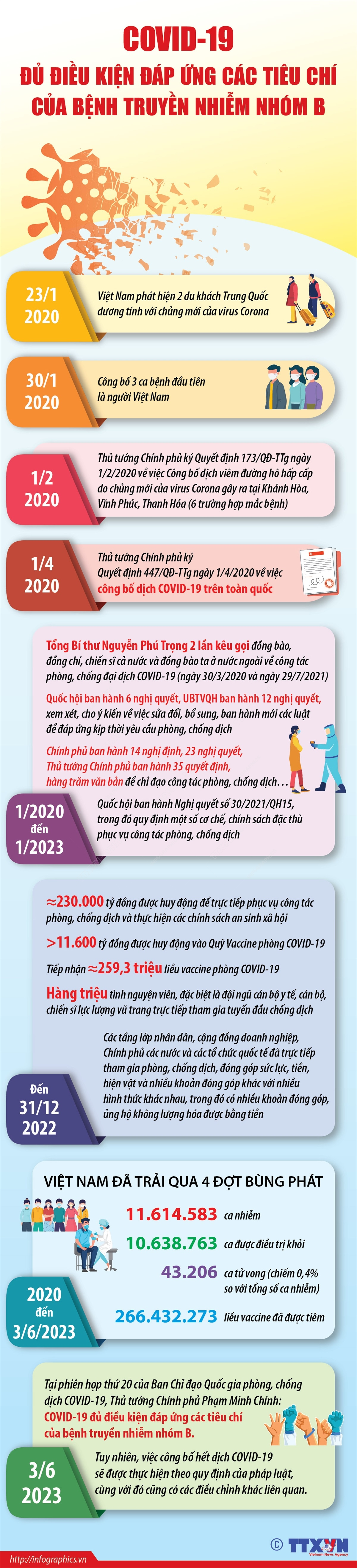 Thủ tướng Chính phủ Phạm Minh Chính, Trưởng Ban Chỉ đạo Quốc gia phòng, chống dịch COVID-19 (Ban Chỉ đạo) chủ trì phiên họp thứ 20 của Ban Chỉ đạo trực tuyến với 63 tỉnh, thành phố trực thuộc Trung ương. Thủ tướng Chính phủ Phạm Minh Chính: COVID-19 đủ điều kiện đáp ứng các tiêu chí của bệnh truyền nhiễm nhóm B. Tuy nhiên, việc công bố hết dịch COVID-19 sẽ được thực hiện theo quy định của pháp luật, cùng với đó cũng có các điều chỉnh khác liên quan.