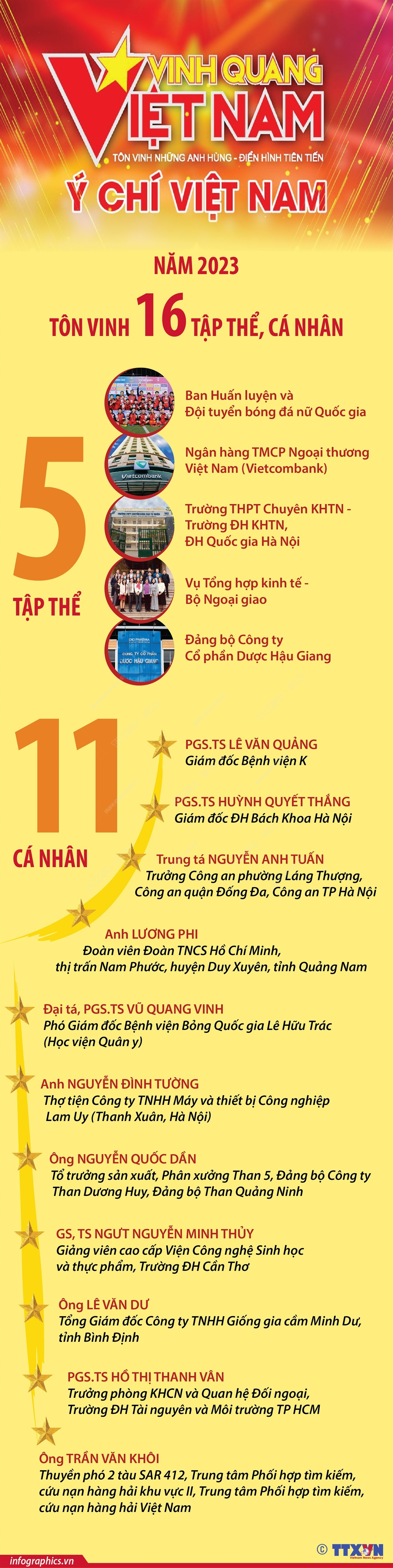 Vinh quang Việt Nam năm 2023: Tôn vinh 16 tập thể, cá nhân điển hình cho ý chí, khát vọng vươn lên