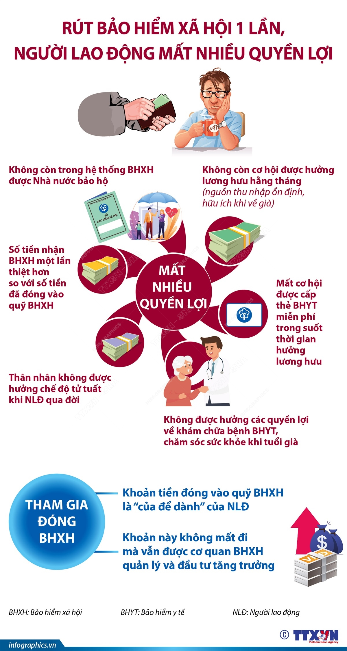 Rút bảo hiểm xã hội 1 lần, người lao động mất nhiều quyền lợi