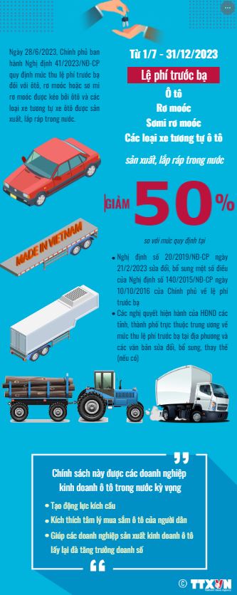 Ngày 28/6/2023, Chính phủ ban hành Nghị định 41/2023/NĐ-CP quy định mức thu lệ phí trước bạ đối với ôtô, rơ moóc hoặc sơ mi rơ moóc được kéo bởi ôtô và các loại xe tương tự xe ôtô được sản xuất, lắp ráp trong nước.