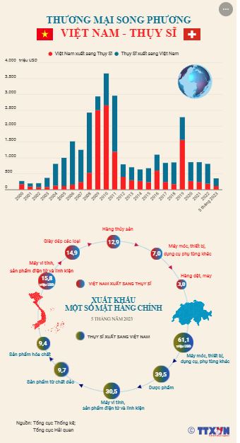 Trải qua hơn 52 năm, quan hệ hai nước Việt Nam - Thụy Sĩ đã phát triển mạnh mẽ, không chỉ trong lĩnh vực chính trị và hợp tác đa phương, mà còn mở rộng sang hợp tác kinh tế, thương mại, đầu tư... Các cuộc trao đổi cấp cao thường xuyên giữa hai nước đã tạo tiền đề cho quan hệ thương mại và đầu tư không ngừng tăng lên. Năm 2022, kim ngạch thương mại hai chiều giữa Việt Nam - Thụy Sĩ đạt trên 806 triệu USD; 5 tháng đầu năm 2023 đạt trên 350 triệu USD. Thụy Sĩ là nhà đầu tư nước ngoài lớn thứ 22 và là một trong số các nhà đầu tư quan trọng của châu Âu tại Việt Nam.