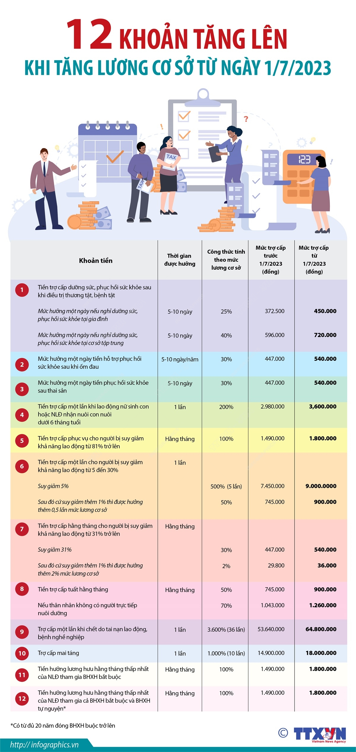 12 khoản tăng lên khi tăng lương cơ sở từ ngày 1/7/2023